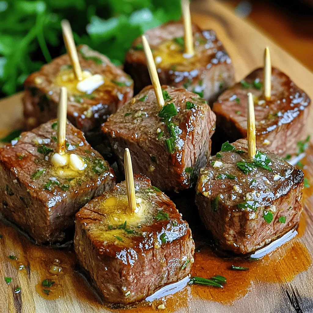 To make your steak bites look great, use a wooden board or a nice platter. Arrange them in a circle or a fun pattern. Use toothpicks for easy serving. Drizzle any leftover garlic butter over the top for a glossy finish. Add a sprinkle of fresh parsley for a pop of color. This makes the dish look appealing and makes it more inviting.