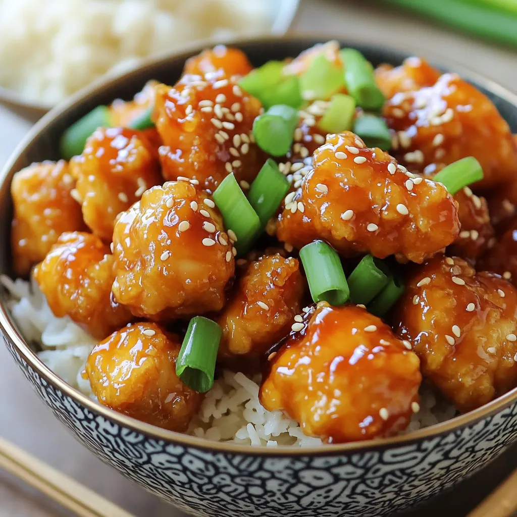Garnish and Plate: Serve the chicken bites hot, garnished with sesame seeds and chopped green onions.