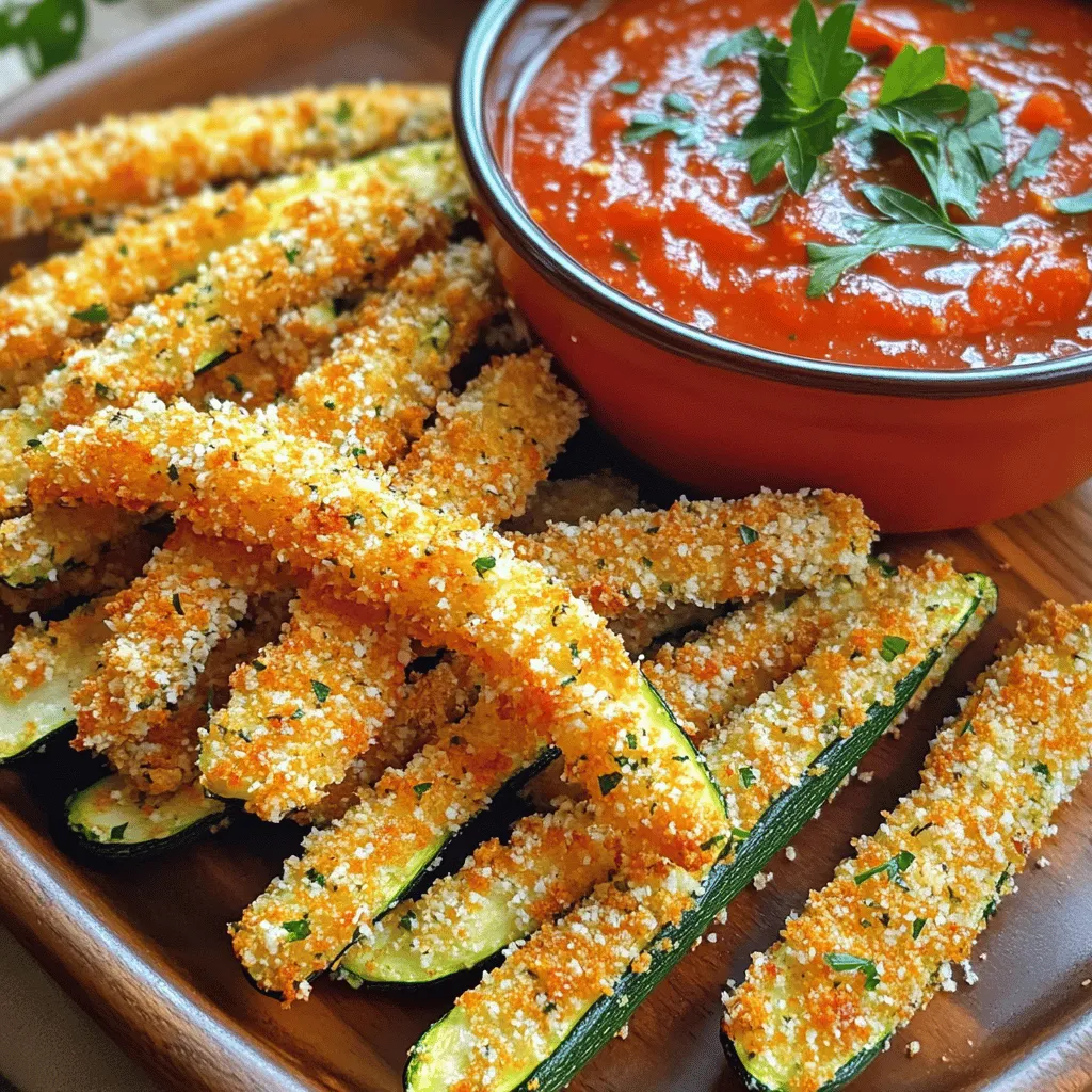 - Zucchini and Coating Ingredients - 2 medium zucchinis, cut into long strips - 1 cup breadcrumbs (panko recommended for extra crunch) - 1/2 cup grated Parmesan cheese - Seasonings and Dairy - 1 teaspoon garlic powder - 1 teaspoon onion powder - 1 teaspoon dried oregano - 1/2 teaspoon salt - 1/2 teaspoon black pepper - Egg and Oil Requirements - 2 eggs, beaten - Olive oil spray These ingredients come together to make a delicious and crispy snack. The zucchini shines through the crunchy coating. I love using panko breadcrumbs for that extra crunch. The Parmesan cheese adds a savory touch. The spices give it a wonderful flavor. Make sure to have everything ready before you start cooking. This will help keep the process smooth and fun. Setting the Temperature Set your air fryer to 400°F (200°C). This high heat helps create a crispy texture. Importance of Preheating Preheating ensures even cooking. When the air fryer is hot, your fries cook faster and turn golden brown. Cutting the Zucchini Take two medium zucchinis. Cut them into long strips about the size of fries. This shape helps them cook evenly. Dipping in Egg Beat two eggs in a bowl. Dip each zucchini strip into the egg, letting the extra drip off. This step helps the coating stick well. Mixing the Breadcrumb Mixture In a mixing bowl, combine one cup of breadcrumbs, half a cup of grated Parmesan cheese, one teaspoon of garlic powder, one teaspoon of onion powder, one teaspoon of dried oregano, half a teaspoon of salt, and half a teaspoon of black pepper. Mix until everything is well combined. Coating the Zucchini Strips Take each egg-dipped zucchini strip and coat it in the breadcrumb mixture. Press gently to help the crumbs stick. This coating gives the fries their lovely crunch. Arranging in the Basket Place the coated zucchini strips in a single layer in the air fryer basket. Make sure not to overcrowd them for the best results. Cooking Time and Temperature Air fry the zucchini fries at 400°F (200°C) for about 10 to 13 minutes. Keep an eye on them to avoid burning. Shaking for Even Cooking At the halfway mark, shake the basket gently. This helps the fries cook evenly on all sides, ensuring each bite is crispy. - Importance of Olive Oil Spray Olive oil spray is key for crispiness. It helps the coating brown evenly. Spray lightly on the zucchini fries before cooking. This small step makes a big difference in crunch. - Adjusting Cooking Time Cooking time can vary by air fryer. Start with 10 minutes and check for browning. If they need more time, add a few extra minutes. Always shake the basket halfway for even cooking. - Additional Seasoning Options You can mix in more spices to boost flavor. Try smoked paprika or cayenne for heat. A dash of lemon zest adds brightness too. Get creative with your favorite flavors. - Fresh Herbs for Garnish Fresh basil or parsley enhances the dish. Sprinkle herbs on top after cooking. This adds color and fresh taste to your zucchini fries. - Managing Portion Sizes It's better to cook in small batches. This helps the fries cook evenly and get crisp. Overcrowding the basket can lead to soggy fries. - Storing Leftovers If you have leftovers, store them in an air-tight container. Keep them in the fridge for up to three days. Reheat them in the air fryer for best results. This keeps them crispy! {{image_2}} You can change up the texture of your Air Fryer Parmesan Zucchini Fries by using different breadcrumbs. Regular breadcrumbs work fine, but I recommend panko breadcrumbs. Panko gives your fries a crunchier bite. If you want to get creative, you can even try crushed cornflakes or crushed nuts. These alternatives add a fun twist to the classic style. Want to spice things up? You can add spices to the breadcrumb mix. Try paprika, cayenne, or Italian seasoning for extra flavor. You can also change the cheese. Instead of just Parmesan, consider mixing in cheddar or mozzarella. These cheeses melt well and add a creamy taste. For dipping, marinara sauce is a classic choice. It pairs perfectly with the cheesy, crispy fries. Garlic aioli is another great option if you want something creamy. If you're serving these fries as a side, they go well with grilled chicken or fish. You can also serve them with a fresh salad for a light meal. To keep your air fryer parmesan zucchini fries fresh, use air-tight containers. Store them in the fridge. This helps keep them from getting soggy. Try to eat them within 2-3 days for the best taste. When it’s time to eat your leftovers, use the air fryer again. Heat it to 350°F (175°C). This method helps keep them crispy. Avoid using the microwave as it can make them soggy. You can also reheat them in the oven. Place them on a baking sheet and warm them up for about 10 minutes. This method also helps maintain that delicious crunch. Yes, you can! Some great options are eggplant, carrots, or sweet potatoes. Each vegetable brings its own flavor and texture. - Recommended Alternatives: - Eggplant: Cut into strips like zucchini. - Carrots: Slice thinner for quicker cooking. - Sweet Potatoes: Cut into fries for a sweeter taste. - Cooking Adjustments: - Cooking times may vary. Eggplant and sweet potatoes often need a few extra minutes. Always check for crispiness. Making zucchini fries gluten-free is easy. You just need to swap out some ingredients. - Gluten-Free Breadcrumb Options: - Use gluten-free breadcrumbs made from rice or corn. These work great for crunch. - Other Substitutions: - You can use ground almonds or crushed nuts. These add a nice flavor and texture too. Dipping sauces add fun to your meal. A few popular options can really enhance your zucchini fries. - Popular Dipping Options: - Marinara sauce: Classic and tasty. - Garlic aioli: Creamy and rich. - Ranch dressing: A cool and tangy choice. - Homemade Dipping Sauce Ideas: - Mix yogurt with herbs for a fresh dip. - Blend avocado with lime for a creamy option. Explore these ideas and make your Air Fryer Parmesan Zucchini 
