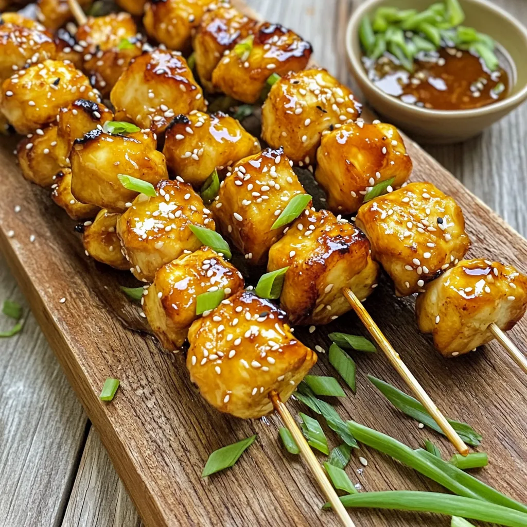 When the skewers finish cooking, I let them rest for a few minutes. I garnish them with sesame seeds and chopped green onions for a fresh look. I also pour any remaining marinade into a small saucepan. I simmer it over medium heat until it thickens. This makes a great dipping sauce. These steps make the dish not only tasty but also a feast for the eyes!