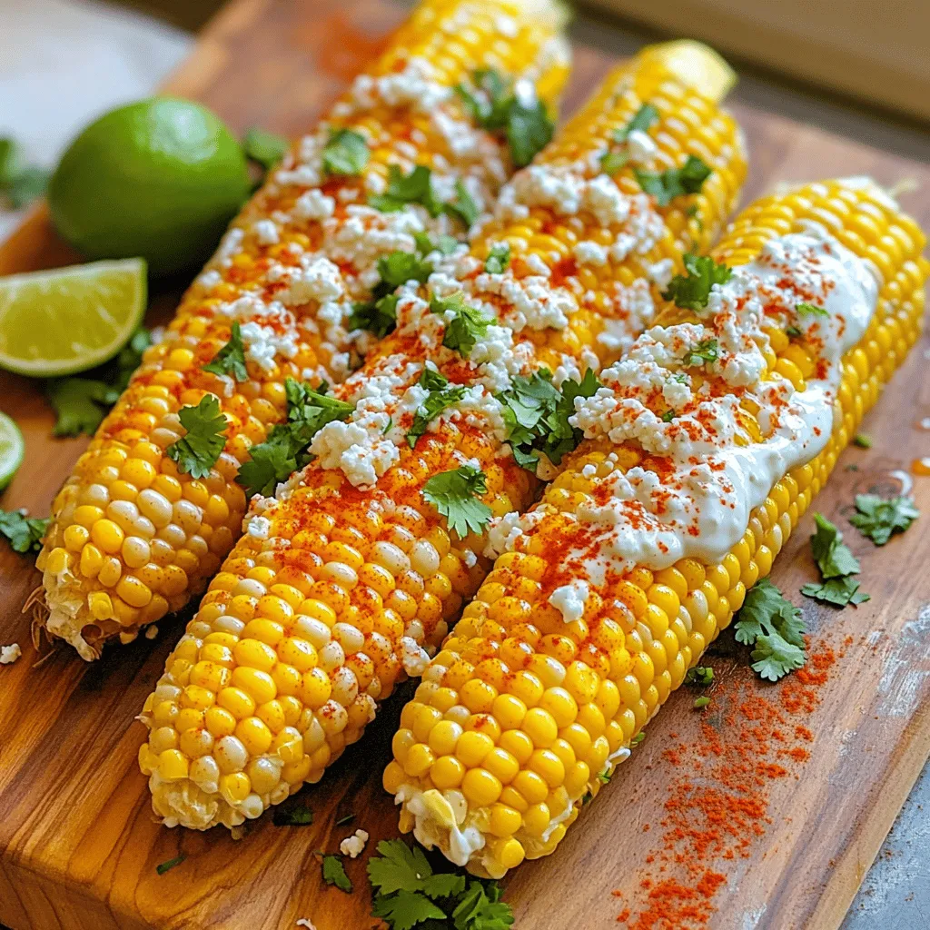 Serve your street corn with lime wedges on the side. The zesty lime juice adds a nice kick. Pair the corn with grilled meats like chicken or steak. It also goes well with fresh salads. Adding some guacamole can make it a full meal. Enjoy the mix of flavors to make every bite special.