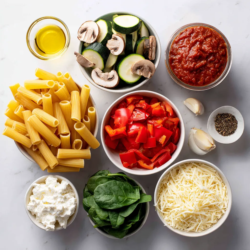 First, set your oven to 375°F (190°C). This helps the ziti cook evenly. While the oven heats, gather your ingredients. You will need ziti pasta, olive oil, onion, garlic, bell pepper, zucchini, mushrooms, spinach, marinara sauce, and cheeses. Make sure your workspace is tidy. This will help you focus on the cooking.