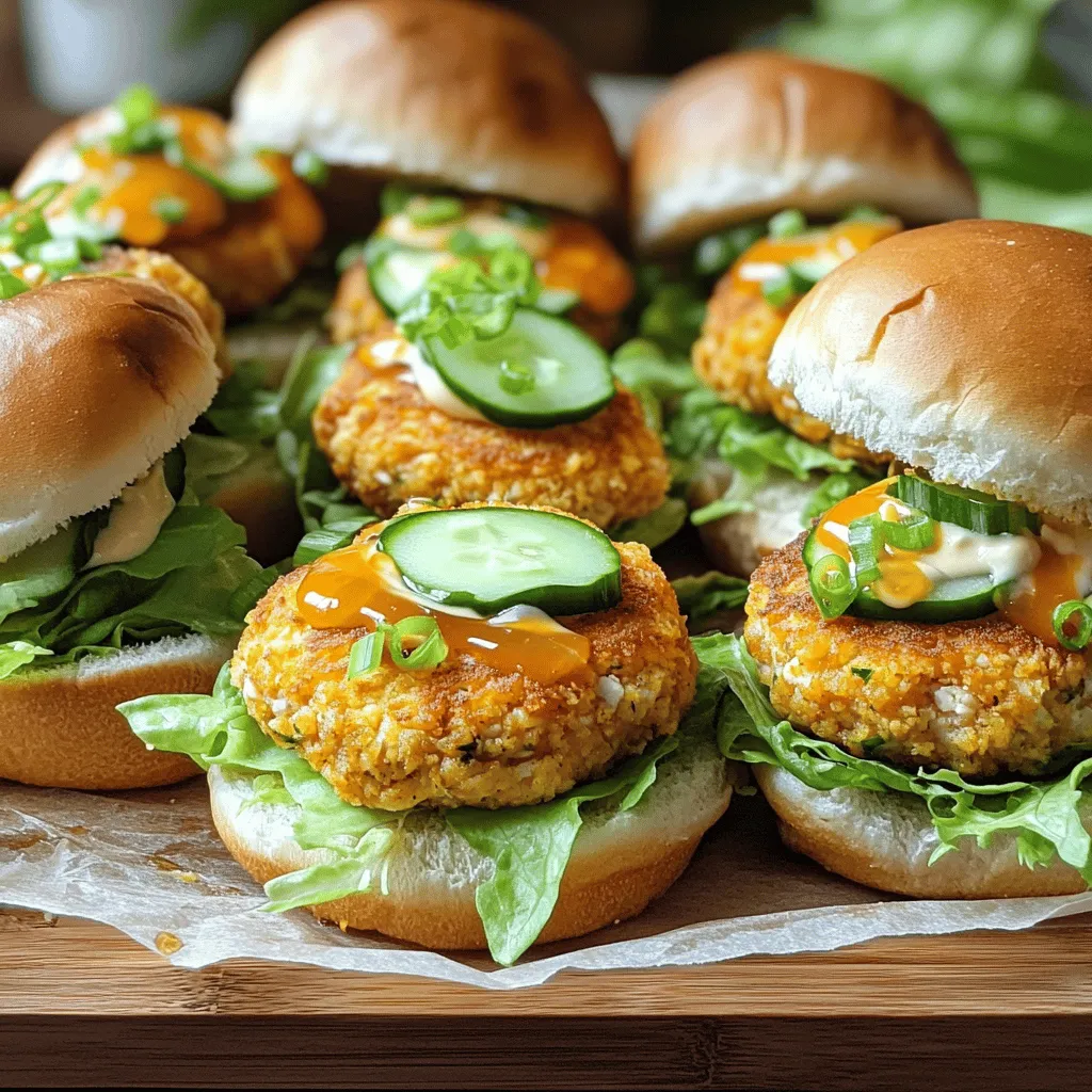 - 1 lb ground chicken - 1/2 cup panko breadcrumbs - 1/4 cup green onions, finely chopped - 1/4 cup mayonnaise - 1 tablespoon sriracha - 1 tablespoon honey - 1 clove garlic, minced - 1 teaspoon ginger, grated - 1 tablespoon soy sauce - 1 tablespoon sesame oil - Salt and pepper to taste - 12 slider buns - 1 cup shredded lettuce - 1/2 cup sliced cucumbers The main ingredients set the stage for these sliders. The ground chicken provides protein and a mild flavor. Panko breadcrumbs add a nice crunch. Green onions give a fresh taste. The combination of mayonnaise, sriracha, and honey makes the Bang Bang sauce sweet and spicy. For seasoning, garlic and ginger bring warmth and depth. Soy sauce and sesame oil enhance the umami flavor. Salt and pepper round out the taste. The slider components complete the dish. The slider buns hold everything together. Shredded lettuce adds crunch and freshness. Sliced cucumbers offer a cool contrast to the spicy sauce. These ingredients work together to create a tasty and simple treat. You can find the complete recipe for Bang Bang Chicken Sliders here. In a large mixing bowl, I start by combining the ground chicken, panko breadcrumbs, chopped green onions, minced garlic, grated ginger, soy sauce, sesame oil, salt, and pepper. I mix it all well until everything is nicely blended. This mix will give the sliders a great taste and texture. Next, I form the mixture into small patties. Each patty should be about the size of your slider buns. I heat a large skillet over medium heat and add a little olive oil. I cook the chicken patties for about 4-5 minutes on each side. I know they are ready when they turn golden brown and are fully cooked. Once the patties are cooked, it’s time to assemble the sliders. I place one patty on each slider bun. Then, I add shredded lettuce and sliced cucumbers on top. Finally, I drizzle the Bang Bang sauce generously over each slider. I close the buns and serve. Enjoy this tasty treat! - Use a non-stick skillet for easier flipping. This makes it simple to turn the patties without sticking. - Cook patties to an internal temperature of 165°F. This ensures they are safe to eat and juicy. - Adjust sriracha for desired spice level. If you prefer it mild, use less. - Experiment with additional flavorings like lime juice. This adds a zesty kick to your sauce. - Serve on a platter lined with parchment paper. It keeps things neat and adds a touch of class. - Garnish with green onions or sesame seeds. This makes your sliders look appealing and fresh. {{image_2}} You can easily swap ground chicken for turkey or pork. Both meats work well in this dish. If you want a lighter sauce, try using Greek yogurt instead of mayonnaise. This adds creaminess without extra calories. Toppings can change the whole vibe of your sliders. You can add sliced avocado for a creamy texture. Pickled jalapeños bring a spicy kick that many enjoy. You might also try different greens like arugula or spinach. These add freshness and color to your meal. For a fun twist, use corn tortillas instead of slider buns. This gives a tasty fusion feel. If you're watching carbs, you can convert the sliders to lettuce wraps. This keeps all the flavors while being lighter and refreshing. You should store leftover sliders in an airtight container in the fridge. This keeps them fresh. They are best consumed within 2-3 days. After that, the taste may not be as good. If you want to save time, freeze uncooked patties for later use. This way, you can enjoy them anytime. You can also reheat cooked sliders in the oven or air fryer for a quick meal. To keep sliders crispy, reheat them in the oven. Use low heat to avoid drying out the patties. This helps maintain their yummy texture. Enjoy your Bang Bang Chicken Sliders even after a few days! Yes, you can prepare patties in advance and refrigerate or freeze them. This makes meal prep easy. You can cook them fresh whenever you are ready to eat. Serve with sweet potato fries, coleslaw, or a simple salad. These sides add crunch and freshness. They also balance the flavors of the sliders well. Use less sriracha or add a pinch of sugar to balance the heat. This way, you can customize the sliders to your taste. It’s easy to make them milder or spicier! Each slider contains about 200 calories, depending on toppings. This is a great option for a filling meal. You can enjoy them without feeling guilty. Yes, they're great for meal prepping due to their easy assembly and storage! You can make a batch, store them, and have quick meals ready for busy days. For the complete instructions and ingredient list, refer to the Full Recipe for Bang Bang Chicken Sliders. This will guide you through making these tasty treats! This blog explored tasty Bang Bang Chicken Sliders. We covered main ingredients, seasoning, and cooking steps. You can customize sliders with different toppings or sauces. Don’t forget to store leftovers properly. These sliders are great for meal prep and perfect for gatherings. With simple tweaks, you can make these your own. Enjoy cooking and sharing this fun dish with family and friends!
