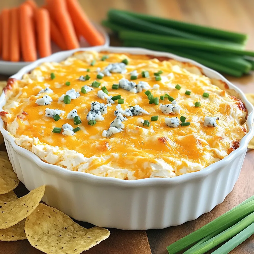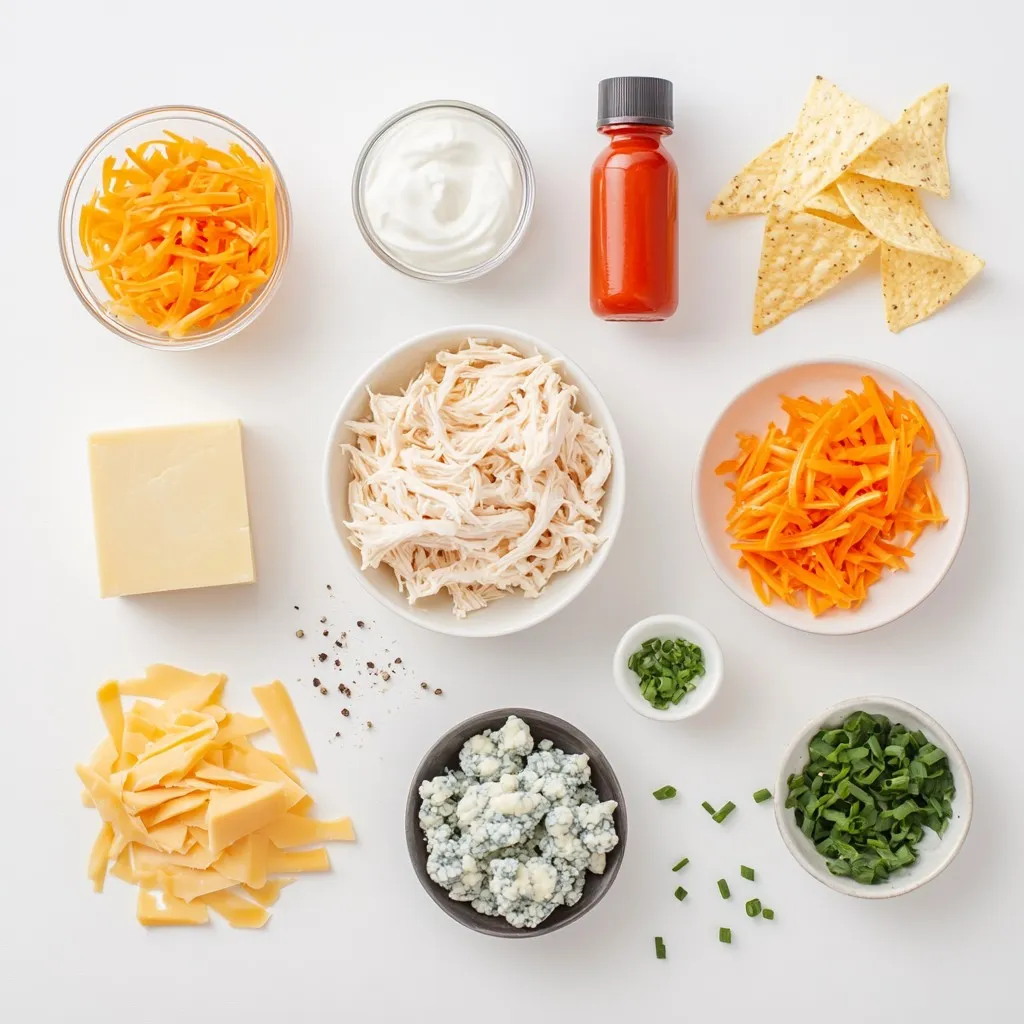 Each ingredient plays a key role. The chicken gives protein and texture. Cream cheese and Greek yogurt create a rich, creamy base. Buffalo hot sauce adds heat and flavor. Cheddar and blue cheese offer a cheesy, savory finish. Garlic and onion powder add depth. Chives give a fresh touch. Tortilla chips or veggie sticks serve as perfect dippers.