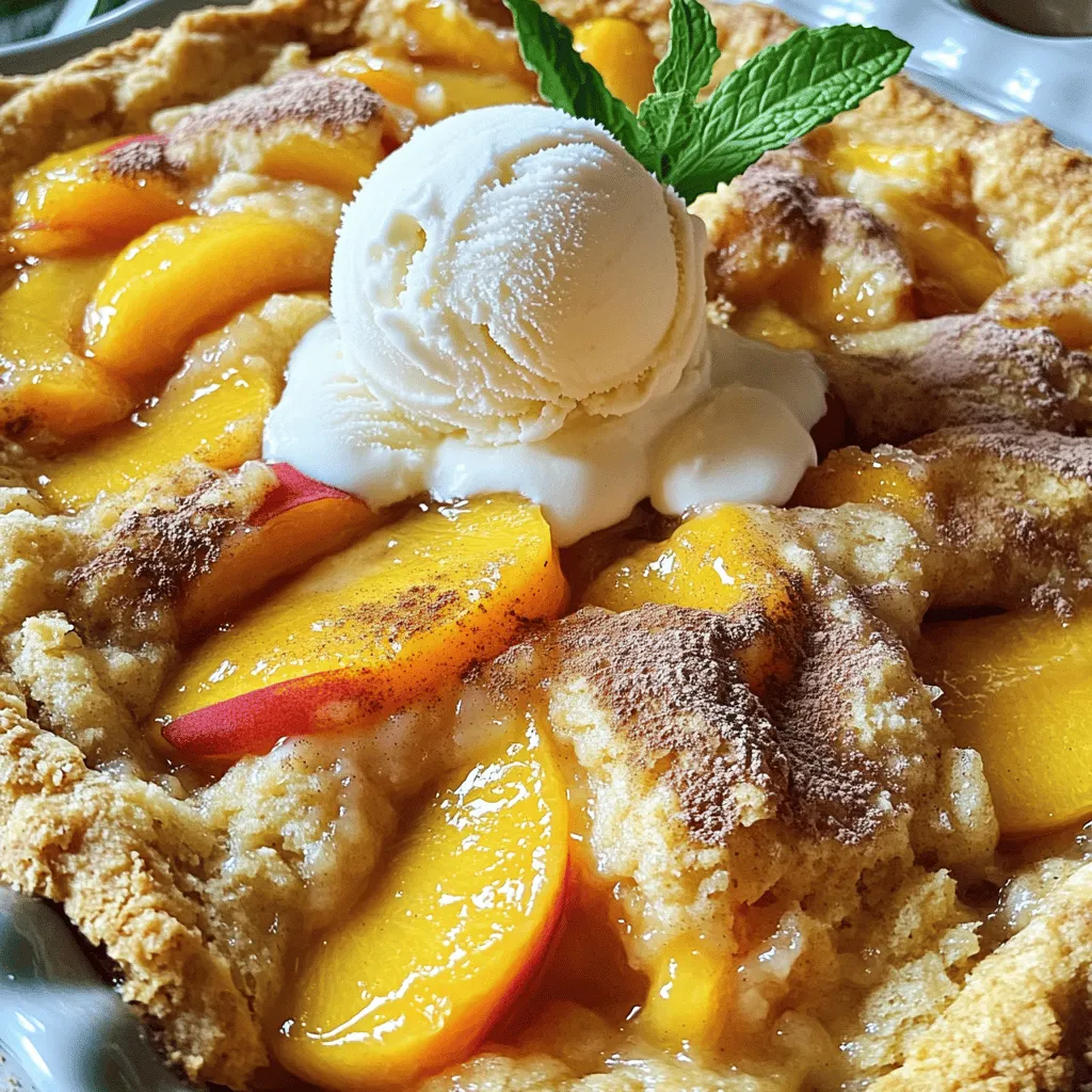 ![For this peach cobbler, use ripe peaches. Look for fruit that is soft but not mushy. Five peaches work well for this recipe. Peel and slice them for the best flavor. Fresh peaches give a sweet and juicy taste that canned ones can't match. When you smell their sweet aroma, you know they are ready to use. You will need 1 cup of granulated sugar, split into two parts. This sweetener balances the tartness of the peaches. One tablespoon of lemon juice adds a nice zing. Cinnamon gives warmth and pairs well with peaches. One teaspoon of cinnamon is just right. Lastly, use one tablespoon of cornstarch to thicken the peach juices as they cook. This will help create a nice filling. For the batter, you need simple baking items. Gather 1 cup of all-purpose flour, one tablespoon of baking powder, and 1/2 teaspoon of salt. These ingredients help your cobbler rise and give it a nice texture. You will also need 1 cup of milk and 1/4 cup of unsalted butter, melted, to create a rich batter. One teaspoon of vanilla extract adds a lovely depth of flavor. These baking essentials form the base of a great cobbler. For the full recipe, check out Peach Paradise Cobbler. Start with fresh, ripe peaches. Peel and slice them into thin pieces. This makes it easy to mix. In a bowl, combine the peach slices with 1/2 cup of sugar, lemon juice, cinnamon, and cornstarch. Toss it well, so each peach gets coated. Let this sit for about 15 minutes. This step helps the peaches release their juices. The sweet mix will soak in the flavors. Next, grab another bowl. In it, whisk together the all-purpose flour, the other 1/2 cup of sugar, baking powder, and salt. This mix gives your cobbler a nice rise. Then, pour in the milk, melted butter, and vanilla extract. Stir until the batter is smooth. It should look creamy and thick. Now, preheat your oven to 350°F (175°C). Grease a 9x13 inch baking dish. Pour the batter into the dish and spread it evenly across the bottom. Carefully spoon the marinated peach mixture over the batter. Do not mix them; the batter will rise around the peaches. Bake for 45-50 minutes. Look for a golden brown top. A toothpick should come out clean when you check the batter. Once done, let it cool for about 15 minutes before serving. For the best taste, serve warm with a scoop of vanilla ice cream on top. This is the Full Recipe you will love! When picking peaches, look for ripe, juicy ones. They should smell sweet and feel slightly soft. I love using freestone peaches because the pit comes out easily. If you can, buy local peaches in season. They taste better and have more flavor. To get a great texture, preheat your oven well. Use a light-colored pan for even baking. Mix the batter just until combined to keep it fluffy. After pouring the batter, gently spoon the peach mix on top. Do not stir it in. The batter will rise and create a perfect crust while baking. Serve your peach cobbler warm for the best taste. A scoop of vanilla ice cream on top makes it special. You can also add fresh mint for a nice touch. If you want, drizzle some honey or caramel sauce over it. For more fun, try serving it with whipped cream. Enjoy your peach paradise! For the full recipe, check out Peach Paradise Cobbler. {{image_2}} You can make a gluten-free peach cobbler easily. Just swap regular flour for gluten-free flour. This change keeps the taste and texture. You can use blends from the store or make your own. Check the labels to ensure they fit your needs. Follow the same steps in the [Full Recipe]. You won’t miss the gluten! A crumble topping adds a new twist. Mix oats, butter, and brown sugar to make it. This topping gives a nice crunch. You can add nuts for extra flavor. Just sprinkle the crumble on top before baking. It adds a lovely texture to the soft peaches. Combine it with the peach filling from the [Full Recipe] for the best results. Get creative with flavors! You can mix in other fruits like blueberries or raspberries. Spices can also change the taste. Try adding nutmeg or ginger for a spicy kick. A splash of bourbon or almond extract gives a grown-up twist. These infusions can make your peach cobbler stand out. Experiment with flavors to find your favorite combination! After you enjoy your peach cobbler, store the leftovers. Let it cool to room temperature first. Then, cover the dish with plastic wrap or aluminum foil. You can also transfer it to an airtight container. This keeps the cobbler fresh. Store it in the fridge for up to three days. To reheat your peach cobbler, preheat the oven to 350°F (175°C). Place the cobbler in an oven-safe dish. Cover it loosely with foil to prevent burning. Heat it for about 15-20 minutes. Check to see if it's warm throughout. You can also use the microwave. Heat in 30-second bursts until warm. If you want to save some for later, freezing works well. First, let the cobbler cool completely. Then, cut it into portions. Wrap each piece in plastic wrap. Place the wrapped pieces in a freezer-safe bag. Remove as much air as possible before sealing. You can freeze it for up to three months. To eat, thaw it overnight in the fridge. Then, reheat as mentioned above. Enjoy your peach paradise anytime! Yes, you can use canned peaches. They are a great option when fresh peaches are not in season. Make sure to drain the syrup from the can. This helps avoid a watery cobbler. Canned peaches often have added sugar, so check the sweetness. You may want to cut down the sugar in the recipe. The flavor will still be sweet and tasty! Adjusting the sugar is easy. If you want a sweeter cobbler, add more sugar. Start with an extra 1/4 cup and taste the peach mixture. If it is not sweet enough, add a bit more. For a less sweet cobbler, reduce the sugar. You can start by cutting out 1/4 cup of sugar. Taste it before baking. This way, you can find the perfect balance for your taste buds. Cobbler and crisp are both delicious desserts, but they have key differences. A cobbler has a soft topping made from