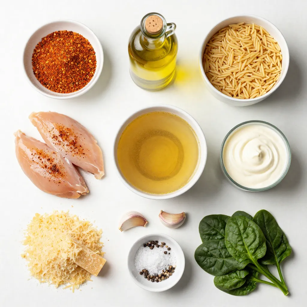 For the Cajun Chicken Alfredo Orzo, the main players are chicken, orzo, cream, and cheese. The chicken provides protein, while orzo adds a fun shape and texture. Heavy cream makes the dish rich and creamy. Parmesan cheese adds a nice, cheesy depth of flavor.
