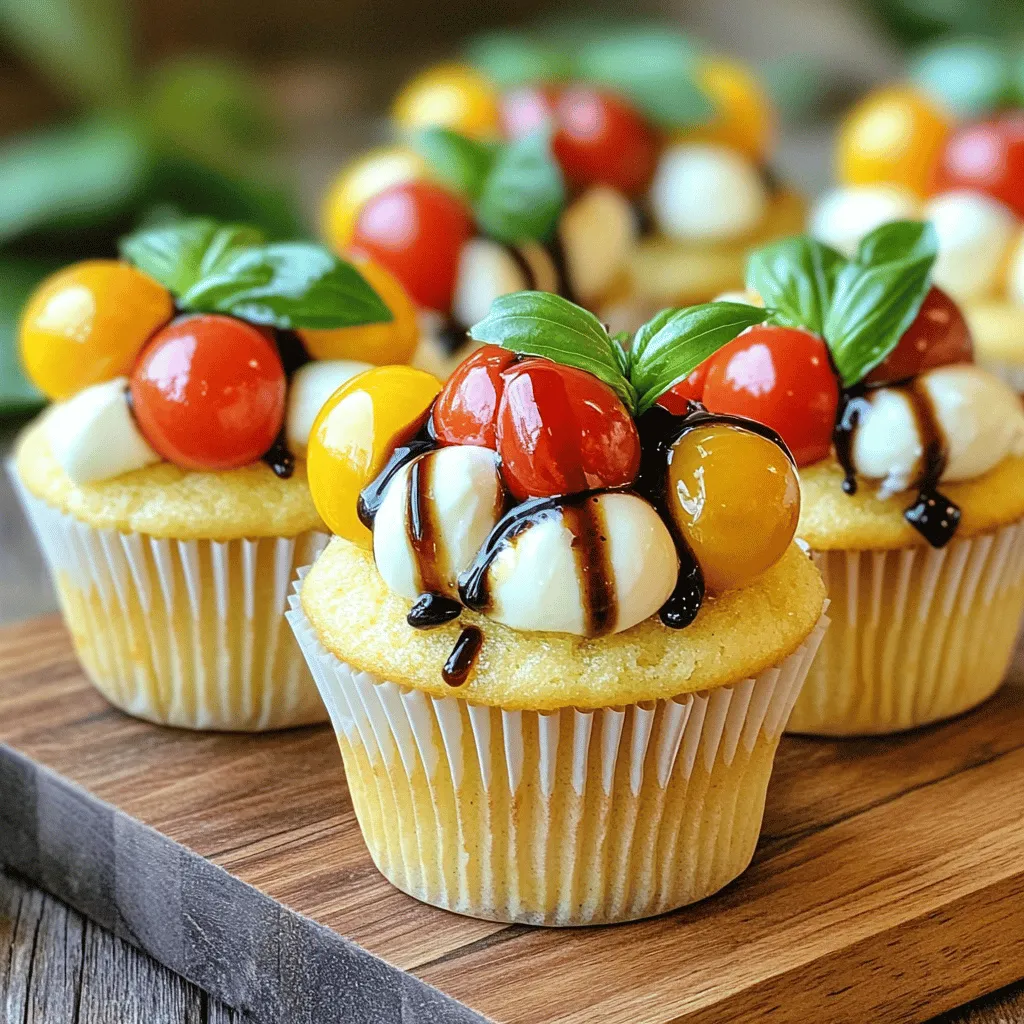 Presentation matters when serving these unique treats. Serve the cupcakes on a rustic wooden board for a warm look. Garnish with extra basil leaves for a fresh touch. Drizzle some balsamic glaze over the cupcakes before serving. This not only looks great but adds a burst of flavor. These small details make your Caprese stuffed cupcakes stand out.