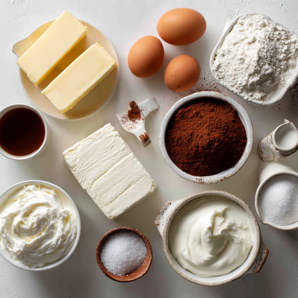 For the cheesecake layer, cream cheese is the star. It gives the cheesecake its smooth and creamy texture. Sugar sweetens it up, and eggs keep it fluffy. Vanilla and sour cream enhance the flavor and add richness.