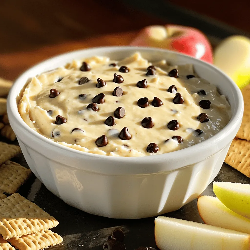 For dipping, I love using apple slices and bananas. Their sweetness pairs well with the chocolate chip cookie dough flavors. Strawberries and pears also work great!You will need simple ingredients like flour, butter, and cream cheese. The blend of sweet and chocolatey flavors is a crowd-pleaser. Here’s a quick overview of how to whip it up.