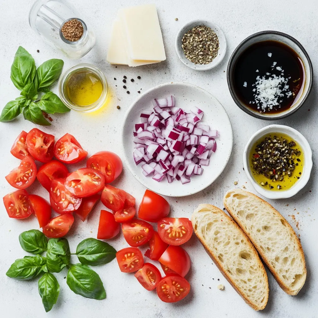 These fresh ingredients are the heart of this dip. Ripe tomatoes give it a juicy base. I prefer using sweet, vine-ripened tomatoes for the best flavor. The red onion adds a nice crunch and a bit of bite. Minced garlic brings a strong aroma that you will love. Fresh basil makes everything pop with its bright, herbal notes.