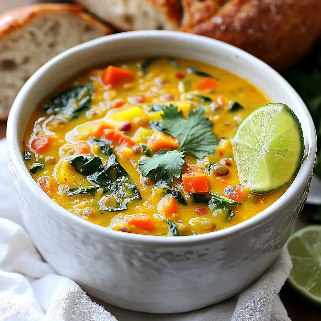 A hearty and flavorful soup made with lentils, coconut milk, and spices.