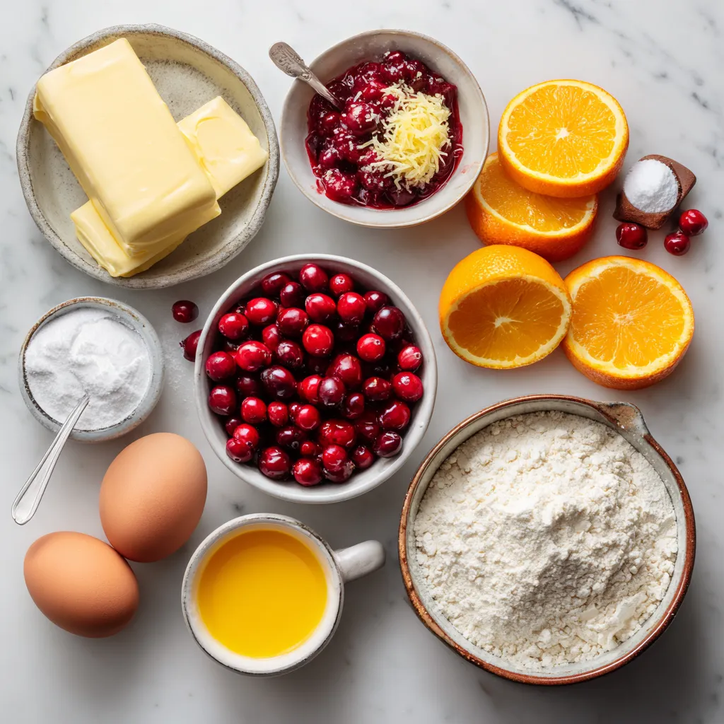 Each item plays an important role in making this cake special. The flour gives it structure. The sugar adds sweetness. Butter keeps it moist and rich. Fresh cranberries bring a tart flavor that balances the sweetness. Orange juice and zest provide a bright, fresh taste. Baking powder and baking soda help the cake rise. The eggs bind everything together, and vanilla adds warmth.