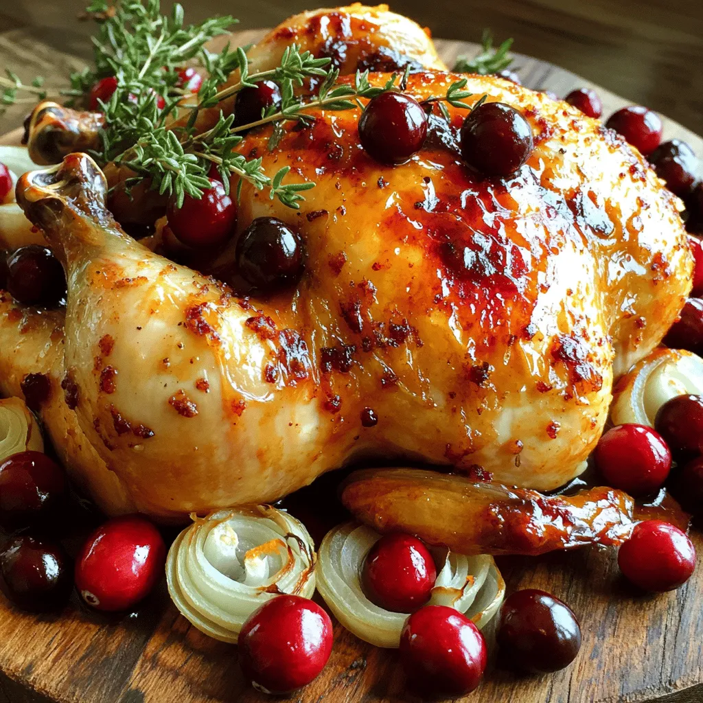 Serving this dish can be fun and creative. Place the chicken on a large platter for a beautiful display. Scatter roasted cranberries around the chicken for color. This adds a nice touch.