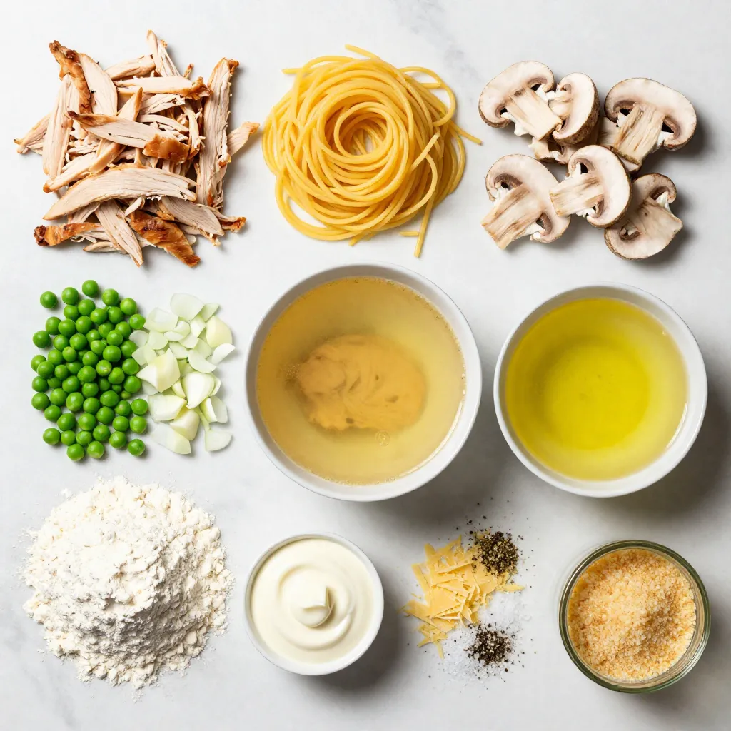 To make Creamy Chicken Tetrazzini Bake, you need a few key items. Here’s what you will need: