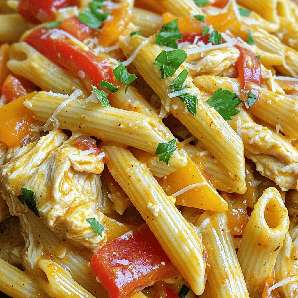 - 1.5 pounds boneless, skinless chicken thighs - 1 can (10 oz) diced tomatoes with green chilies - 1 cup chicken broth - 1 bell pepper (red or green), sliced - 1 medium onion, diced - 3 cloves garlic, minced - 2 tablespoons Cajun seasoning - 1 teaspoon smoked paprika - 1 teaspoon dried thyme - 8 ounces penne pasta - 1 cup heavy cream - Salt and pepper to taste - 1/4 cup fresh parsley, chopped (for garnish) - Grated Parmesan cheese (for serving) When I make Crockpot Cajun Chicken Pasta, I love to focus on the ingredients. I start with 1.5 pounds of boneless, skinless chicken thighs. These thighs are tender and juicy, perfect for slow cooking. I add a can of diced tomatoes with green chilies for a burst of flavor. The tomatoes bring moisture and a little heat. Next, I pour in 1 cup of chicken broth. This adds depth to the dish. I slice one bell pepper, either red or green, and dice one medium onion. Both vegetables add sweetness and texture. I also use three cloves of minced garlic for a fragrant kick. The spices are key. I measure out two tablespoons of Cajun seasoning, one teaspoon of smoked paprika, and one teaspoon of dried thyme. These spices give the dish its unique Cajun flair. For the pasta, I choose 8 ounces of penne. It holds the sauce well and makes every bite satisfying. I finish with 1 cup of heavy cream for a rich, creamy texture. Finally, I season with salt and pepper to taste. To garnish, I chop 1/4 cup of fresh parsley and have grated Parmesan cheese ready for serving. - Additional spices and seasonings - Other vegetables (e.g., zucchini or spinach) Sometimes, I like to mix in other spices. You can add cayenne for more heat or some Italian herbs for a twist. Adding vegetables like zucchini or spinach boosts nutrition and color. - Chicken alternatives (e.g., turkey or tofu) - Dairy-free options for heavy cream If you want to switch things up, use turkey instead of chicken. Tofu works well for a meat-free option. For a dairy-free version, coconut cream can replace heavy cream. To start, you will layer the chicken and vegetables in the crockpot. First, place the boneless chicken thighs at the bottom. Make sure they fit snugly. Next, add the sliced bell pepper, diced onion, and minced garlic on top. This layering helps all the flavors mix well as they cook. Now, let’s mix the liquids and seasonings. In a small bowl, combine the diced tomatoes with juices, chicken broth, Cajun seasoning, smoked paprika, and thyme. Stir until everything is blended. Pour this mix over the chicken and veggies in the crockpot. For cooking, set your crockpot to low for 6-7 hours or high for 3-4 hours. If you want to check the chicken, it should be fully cooked and tender when done. Cooking times may change based on your crockpot model. About 30 minutes before serving, carefully remove the chicken. Use two forks to shred it into bite-sized pieces. Set it aside for a moment while you cook the pasta. To cook the pasta in the crockpot, stir in the penne pasta. Cover the crockpot and let it cook for 15-20 minutes. This will help the pasta soak up all the flavors. Once the pasta is tender, add the heavy cream. Mix well to combine everything. Finally, return the shredded chicken to the crockpot. Season with salt and pepper to taste. Your delicious meal is almost ready! For the full recipe, check the earlier section. To make shredding chicken easy, use two forks. Hold one fork in each hand. Pinch the chicken with one fork and pull it apart with the other. This method works best when the chicken is hot. For pasta, cook it just until firm. Al dente pasta has a slight bite, which makes it perfect for this dish. Stir it gently into the sauce to avoid mushiness. Adjust cooking times based on the thickness of your chicken. If your chicken is thicker, add 30 minutes to the cooking time. For thin pieces, check for doneness sooner. Meal prep is key with this dish. You can chop the veggies ahead of time. Store them in the fridge for quick assembly later. Pair your Cajun chicken pasta with a simple side salad. A fresh green salad adds crunch and balance. For a wine pairing, try a chilled Sauvignon Blanc. It complements the spice and creaminess of the pasta. If you want a red, a light Pinot Noir works well too. For the full recipe, check out the details above! {{image_2}} You can easily adjust this recipe to fit different diets. For a gluten-free option, swap the penne pasta with gluten-free pasta. Many brands offer great alternatives that taste good. You can find these at most grocery stores. For low-carb options, consider using zucchini noodles or spaghetti squash. These choices keep the dish light and flavorful. To add a smoky flavor, try using smoked sausage or extra smoked paprika. You can also mix in some cayenne pepper for heat. If you love cheese, feel free to get creative. Adding different cheeses, like pepper jack or gouda, can change the taste. A blend of cheeses gives a rich texture and taste. Serving your dish with crusty bread makes it perfect for soaking up the sauce. A fresh baguette or garlic bread pairs well with this meal. If you want to turn it into a casserole, bake it in the oven. Just layer the pasta and chicken in a baking dish, top with cheese, and bake until bubbly. This makes for a hearty and comforting meal. Check out the Full Recipe to explore more ideas! To store leftovers, place them in an airtight container. This keeps the dish fresh. Let the pasta cool before sealing. In the fridge, it stays good for about 3 to 4 days. For longer storage, freezing is a great option. Simply use freezer-safe containers or bags. Make sure to label them with the date. This way, you know when to use them. When reheating, avoid the microwave if you can. It can make the pasta mushy. Instead, use a pot on the stove. Add a splash of water or broth to keep it moist. Heat over low to medium heat, stirring gently. You can also use the oven. Place the pasta in a baking dish, cover it with foil, and heat at 350°F 