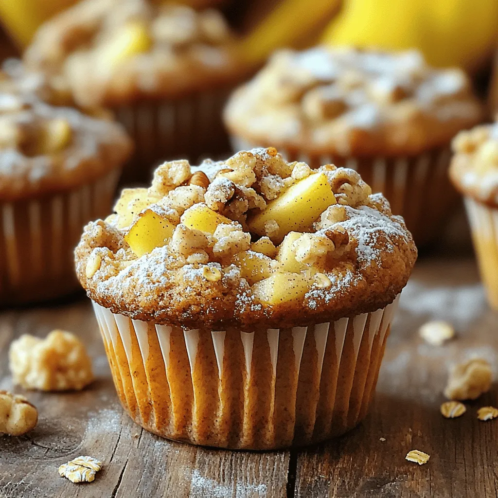- 1 cup all-purpose flour - 1 cup whole wheat flour - 1 teaspoon baking powder - 1/2 teaspoon baking soda - 1/2 teaspoon salt - 1 teaspoon ground cinnamon - 1/4 teaspoon nutmeg - 1/2 cup brown sugar - 1/4 cup granulated sugar - 1/2 cup unsalted butter, melted - 2 large eggs - 1/2 cup milk - 2 cups diced apples (about 2 medium apples) - 1/2 cup rolled oats (for topping) - 1/4 cup chopped walnuts or pecans (optional, for topping) - 1 tablespoon sugar (for topping) Gather these ingredients for a cozy baking experience. The blend of all-purpose and whole wheat flour gives these muffins a hearty base. Baking powder and baking soda help them rise perfectly. Add salt, cinnamon, and nutmeg for warm, inviting flavors. For the wet mix, combine the richness of brown sugar with the sweetness of granulated sugar. Melted unsalted butter makes the muffins tender. Eggs and milk add moisture and richness. Finally, fold in diced apples for sweetness and texture. The rolled oats and nuts create a crunchy topping that contrasts the soft muffin. Don't forget that sprinkle of sugar for extra sparkle! These simple yet delicious ingredients make the perfect apple crumble muffins. To make your muffins, start by preheating your oven to 350°F (175°C). This temperature ensures even baking. Then, prepare your muffin tin. You can either line it with paper liners or grease it lightly with butter or oil. This step helps the muffins come out easily after baking. Now, let’s combine the dry ingredients. In a large bowl, mix together 1 cup of all-purpose flour, 1 cup of whole wheat flour, 1 teaspoon of baking powder, 1/2 teaspoon of baking soda, 1/2 teaspoon of salt, 1 teaspoon of ground cinnamon, and 1/4 teaspoon of nutmeg. Whisk these together until they are well blended. Next, in another bowl, mix the wet ingredients. Add 1/2 cup of melted unsalted butter, 1/2 cup of brown sugar, and 1/4 cup of granulated sugar. Stir until smooth. Then, add 2 large eggs and 1/2 cup of milk. Whisk until everything is fully combined. Now it’s time to merge the wet and dry mixtures. Gradually add the wet mix to the dry ingredients. Stir gently until just combined. Be careful not to overmix! Then, fold in 2 cups of diced apples, making sure they are evenly spread throughout the batter. In a small bowl, create your crumble topping. Mix 1/2 cup of rolled oats, 1/4 cup of chopped walnuts or pecans (if using), and 1 tablespoon of sugar. Now, divide the muffin batter evenly into the prepared muffin tin. Fill each cup about 2/3 full. Sprinkle the crumble topping generously over each muffin. Finally, bake the muffins in the preheated oven for 20-22 minutes. Check if they are done by inserting a toothpick into the center. If it comes out clean, they are ready! Allow them to cool in the tin for 5 minutes, then transfer to a wire rack to cool completely. Enjoy your delicious apple crumble muffins! - Measure your flour correctly. Use a spoon to fill your measuring cup. - Level it off with a knife for accuracy. - Use room temperature eggs and milk. This helps your muffins rise well. - Do not overmix the batter. Mix just until you see no dry flour. - Serve your muffins warm for the best taste. - They are great at room temperature, too! - Try adding a dollop of whipped cream or yogurt on top. - Pair them with a cup of hot tea or coffee for a cozy treat. - If your muffins turn out dry, try adding a bit more milk next time. - Make sure not to bake them too long. Check for doneness at 20 minutes. - For even baking, rotate the muffin tin halfway through baking. - If you notice uneven tops, consider using an oven thermometer. This checks your oven's true temperature. {{image_2}} You can easily make these muffins fit your needs. - For a gluten-free option, use a gluten-free flour blend. Make sure it has xanthan gum for better structure. - Different apples can change the taste. Try Granny Smith for tartness or Fuji for sweetness. Each type gives a unique flavor. Want to spice things up? - Add a dash of ginger or allspice for an extra kick. Just a little can change the whole muffin. - Dried fruits can add great texture. Raisins or cranberries mix well with the apples. Make your muffins fit the season. - In the fall, add pumpkin spice for a cozy feel. It pairs perfectly with apples. - In summer, swap apples for peaches or berries. These fruits also add freshness and sweetness. To keep your apple crumble muffins fresh, store them in an airtight container. This helps to keep them moist. Place a paper towel inside the container to absorb excess moisture. You can also use a zip-top bag, but ensure you remove as much air as possible. For longer storage, freeze the muffins. Wrap each muffin tightly in plastic wrap. Place them in a freezer bag, and label the bag with the date. They can last up to three months in the freezer without losing flavor. When you want to enjoy your muffins again, reheating is simple. The oven gives the best results. Preheat your oven to 350°F (175°C). Place the muffins on a baking sheet and heat for about 10 minutes. This method keeps them soft and warm. You can also use a microwave for quick reheating. Heat each muffin for about 15-20 seconds at medium power. However, this may make them a bit soggy, so use it as a last resort. These delicious muffins stay fresh for about 3-4 days at room temperature. Store them properly in an airtight container to keep them tasty. If you notice any mold or an off smell, it’s best to toss them. Signs of spoilage include a dry texture or a sour taste. Always trust your senses when checking food freshness. To make your muffins moist, use more apples. The moisture from the apples helps a lot. You can also add a bit more milk or butter. This adds richness and keeps the muffins soft. Avoid overbaking; check them around 20 minutes. You want a toothpick to come out clean, but not dry. Yes, you can use less sugar. Reducing sugar by a quarter is often fine. The muffins will still taste good, but they may not b