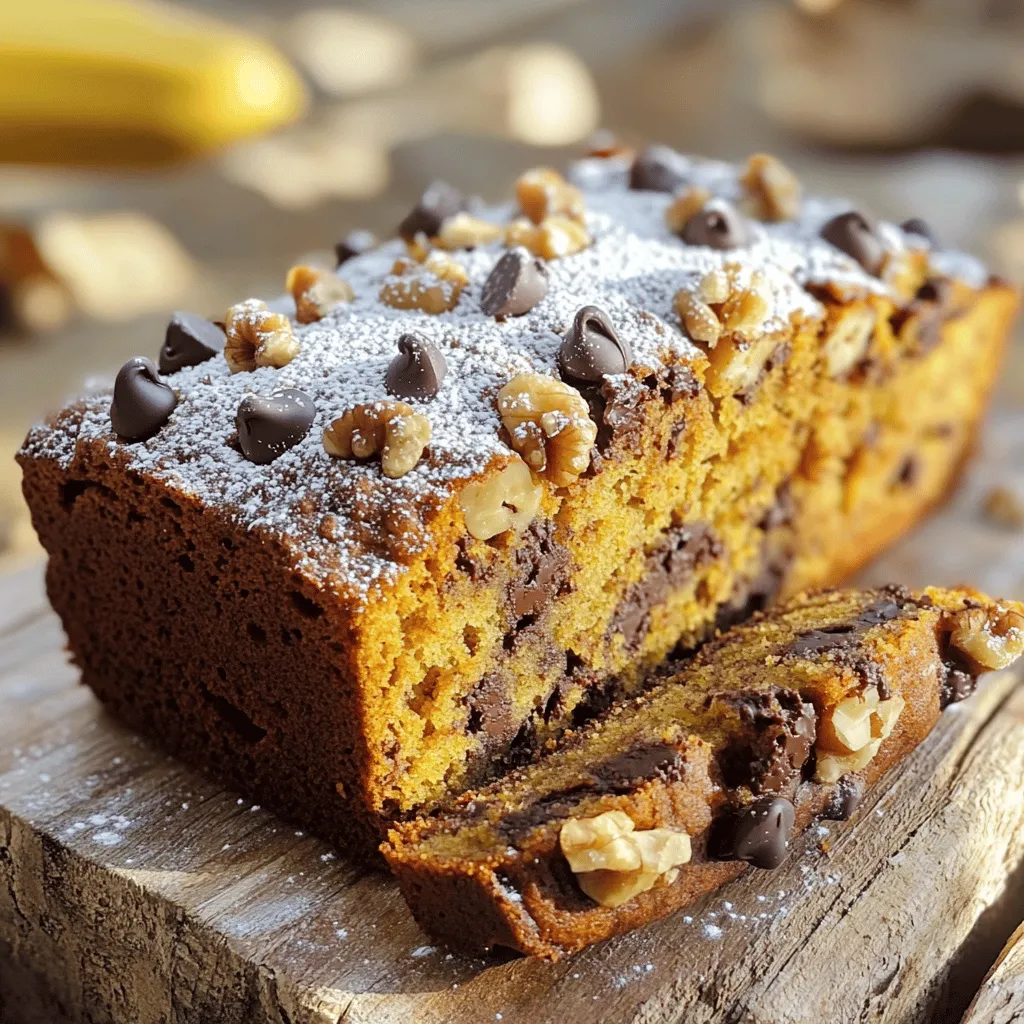 - 1 cup mashed ripe bananas - 1 cup canned pumpkin puree - 1/2 cup vegetable oil - 1 cup brown sugar - 1/2 cup granulated sugar To make banana chocolate chip pumpkin bread, you need a blend of flavors. Start with ripe bananas. They should be soft and sweet. Use about two to three bananas for one cup of mash. Canned pumpkin puree gives the bread a rich texture and taste. It is smooth and easy to mix in. Vegetable oil keeps the bread moist. Using brown sugar adds depth, while granulated sugar sweetens it just right. - 1/2 cup semi-sweet chocolate chips - 1/2 cup chopped walnuts or pecans For extra fun, consider adding chocolate chips. They melt and create little pockets of sweetness. Nuts like walnuts or pecans add crunch and flavor, but they are not necessary. You can skip them if you prefer a smoother texture. - All-purpose flour - Baking soda, baking powder, and salt - Ground spices: cinnamon and nutmeg All-purpose flour is your main base. It helps the bread rise and gives it structure. Baking soda and baking powder are key for leavening. They help the bread become light and fluffy. Don’t forget the salt; it enhances all the flavors. Ground cinnamon and nutmeg bring warmth and spice. They make the bread smell amazing while baking. First, preheat your oven to 350°F (175°C). This step is key for even cooking. Next, get a 9x5-inch loaf pan ready. You can grease it or line it with parchment paper. This makes it easy to remove the bread later. Now, let’s mix the wet ingredients. In a large bowl, combine: - 1 cup mashed ripe bananas (about 2-3 bananas) - 1 cup canned pumpkin puree - 1/2 cup vegetable oil (or melted coconut oil) - 1 cup brown sugar, packed - 1/2 cup granulated sugar - 2 large eggs - 1 teaspoon vanilla extract Stir these until the mixture is smooth and well combined. In a separate bowl, whisk together the dry ingredients. You will need: - 2 cups all-purpose flour - 1 teaspoon baking soda - 1 teaspoon baking powder - 1/2 teaspoon salt - 1 teaspoon ground cinnamon - 1/2 teaspoon ground nutmeg Whisking helps to mix everything evenly. Next, we will slowly add the dry ingredients into the wet mix. Stir gently until just combined. It is important to not overmix. A few lumps are okay. Now, it’s time to add some fun! Fold in: - 1/2 cup semi-sweet chocolate chips - 1/2 cup chopped walnuts or pecans (optional) Make sure they are evenly spread in the batter. Pour the batter into your prepared pan. Use a spatula to smooth the top. Bake it in your preheated oven for 55-65 minutes. Check for doneness by inserting a toothpick into the center. If it comes out clean, your bread is ready! - Avoid overmixing the batter. Mix just until the dry ingredients blend with the wet ones. This keeps the bread light and fluffy. - Allow the bread to cool for optimal slicing. If you cut it too soon, the slices might crumble. Patience pays off! - Use ripe bananas for natural sweetness. The darker the bananas, the sweeter they get. This adds a rich taste to your bread. - Experiment with spice levels. If you love a kick, add more cinnamon or nutmeg. Adjusting spices lets you create a unique flavor every time. - Adjust baking time for different ovens. Some ovens run hotter or cooler, so check your bread earlier or later than the time stated. - Use a toothpick to test for doneness. Insert it into the center; if it comes out clean, your bread is ready! This simple trick helps you avoid underbaking. {{image_2}} You can switch out brown sugar for honey or maple syrup. This change adds a unique taste. Honey offers a floral note, while maple syrup gives a rich flavor. Both options are great for those who want a different sweetness. If you want a healthier option, try using coconut sugar. Coconut sugar has a lower glycemic index than regular sugar. It also has a hint of caramel flavor. This makes it a tasty choice for your bread. To add more texture and taste, try adding dried fruit. Raisins or cranberries work well in this recipe. They bring sweetness and chewiness to each bite. You can mix in about 1/2 cup of your chosen dried fruit. Another fun idea is to incorporate citrus zest. A bit of orange or lemon zest can brighten the flavor. This small addition can elevate your bread to new heights. If you need a gluten-free option, consider using almond or oat flour. Both flours will work well in this recipe. Just replace all-purpose flour with the same amount of your chosen flour. For a vegan adaptation, use flax eggs instead of regular eggs. To make one flax egg, mix 1 tablespoon of ground flaxseed with 2.5 tablespoons of water. Let it sit for a few minutes to thicken. This simple swap keeps your bread delicious and plant-based. To keep your Banana Chocolate Chip Pumpkin Bread fresh, wrap it tightly in plastic wrap. This helps seal in moisture. You can also store the bread at room temperature for a few days. For best results, place the wrapped bread in an airtight container. This keeps out air and helps maintain its soft texture. Make sure to store it away from direct sunlight. If you want to save your Banana Chocolate Chip Pumpkin Bread for later, freezing is a great option. First, let the bread cool completely. Then, wrap it in plastic wrap, ensuring no air gets in. Next, place it in a freezer-safe bag or container. When you're ready to enjoy it again, thaw the bread in the fridge overnight. For the best texture, let it sit at room temperature for a bit before slicing. You can even warm it up in the oven for a few minutes to refresh it. This delicious bread is best enjoyed within a week. After this time, it may start to lose its flavor and moisture. Look for signs that your bread has gone bad. If you see mold or notice an off smell, it’s time to toss it. Trust your senses to determine if it’s still good! Yes, this bread can be made and stored for later. You can bake it a day or two in advance. Just let it cool completely before wrapping it. Store it in an airtight container at room temperature. If you want a