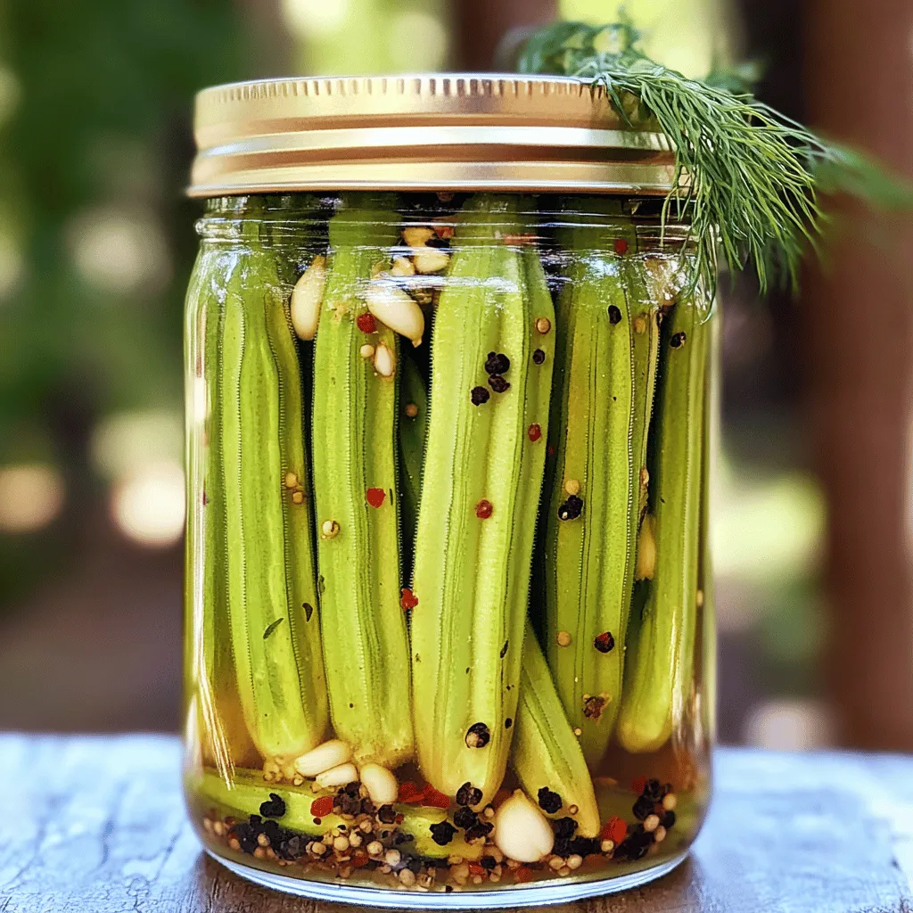 To make the best dill pickled okra, you need fresh okra. Aim for about 1 pound of okra. Make sure the stems are trimmed, and the pods are firm and bright green. You will also need 1 cup of distilled white vinegar and 1 cup of water. The vinegar gives a tangy flavor that is key to pickling.