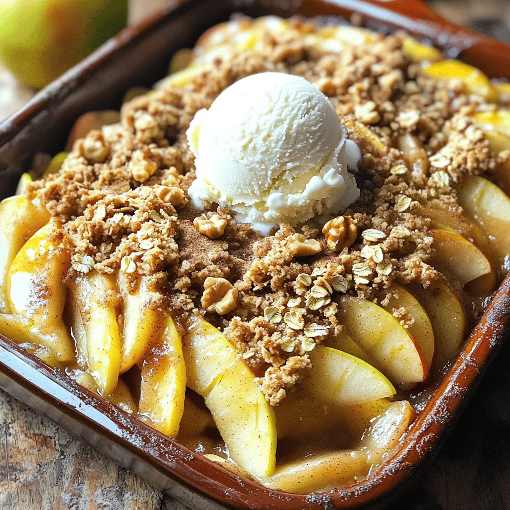 To make a great apple crumble, choose apples that are crisp and tart. I love using Granny Smith or Honeycrisp apples. They add the right balance of sweet and sour. Avoid mealy apples, like Red Delicious. Their texture will not hold up in the baking process. Always inspect the apples for bruises or soft spots. Fresh apples will give you the best flavor.