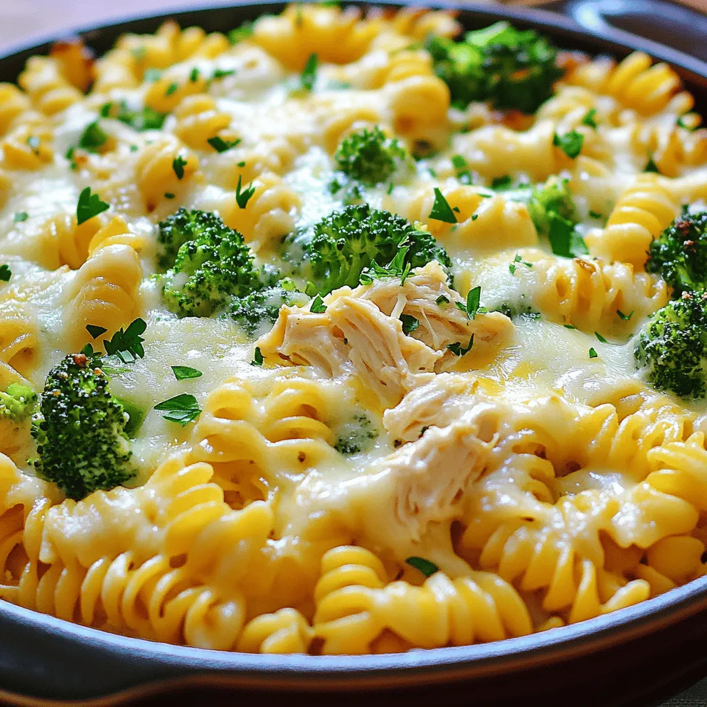 Start by preheating your oven to 375°F (190°C). This step is key for cooking your dish evenly. While the oven heats, gather all your ingredients. You need cooked rotini pasta, cooked chicken breast, Alfredo sauce, broccoli florets, mozzarella cheese, Parmesan cheese, garlic powder, Italian seasoning, salt, and pepper. Having everything ready makes cooking fun and easy.