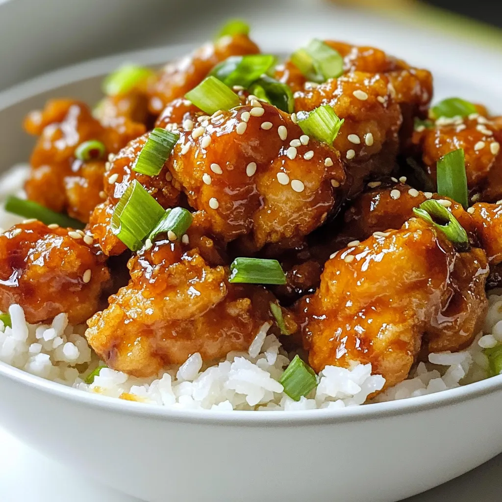 To make Easy General Tso Chicken, gather these key ingredients: - 1 lb boneless, skinless chicken thighs (cut into bite-sized pieces) - 1/2 cup cornstarch - 1/4 cup vegetable oil (for frying) - 2 cloves garlic (minced) - 1 tablespoon fresh ginger (grated) - 3-4 dried red chili peppers (adjust for spice preference) - 1/4 cup soy sauce - 1/4 cup chicken broth - 2 tablespoons rice vinegar - 2 tablespoons honey To make your dish pop, consider adding these garnishes: - 2 green onions (sliced) - Sesame seeds These extras not only add color but also boost flavor. For this recipe, you will need a few essential tools: - Large skillet or wok - Mixing bowl - Measuring cups and spoons - Paper towels for draining These supplies help you cook efficiently and create that perfect crispy chicken. {{ingredient_image_1}} Start by cutting 1 pound of boneless, skinless chicken thighs into bite-sized pieces. Place the chicken in a bowl. Next, add 1/2 cup of cornstarch. Coat the chicken pieces well with the cornstarch. Let the chicken sit for about 10 minutes. This helps the cornstarch stick better. Heat 1/4 cup of vegetable oil in a large skillet or wok over medium-high heat. Wait until the oil is hot. Carefully add the cornstarch-coated chicken pieces to the oil. Fry the chicken for 5 to 7 minutes. You want it to be golden and crispy. If the pan is too full, work in batches. When done, remove the chicken and place it on paper towels to drain. After frying the chicken, there will be some oil left. Remove excess oil, leaving about 1 tablespoon in the skillet. Add 2 cloves of minced garlic, 1 tablespoon of grated ginger, and 3-4 dried red chili peppers to the hot skillet. Sauté these for about 30 seconds until they smell good. In a small bowl, mix 1/4 cup of soy sauce, 1/4 cup of chicken broth, 2 tablespoons of rice vinegar, and 2 tablespoons of honey. Pour this mixture into the skillet with the garlic and ginger. Bring it to a simmer. Now, add the crispy chicken back into the skillet. Toss everything until the chicken is fully coated and heated through. This takes about 2-3 minutes. To get that crispy texture, start by coating the chicken in cornstarch. This helps lock in moisture and adds crunch. Let the coated chicken sit for about 10 minutes. This waiting time lets the cornstarch stick well. When frying, make sure your oil is hot. I suggest heating it over medium-high heat. Fry the chicken in small batches. This keeps the oil temperature steady and ensures each piece cooks evenly. Drain the fried chicken on paper towels to remove excess oil. If you don't have chicken thighs, you can use chicken breast. Just cut it into bite-sized pieces. For a gluten-free option, swap soy sauce for tamari. If you need a vegan dish, replace chicken with tofu. Simply press and cube the tofu, then follow the same cooking steps. You can also replace honey with maple syrup for a vegan sweetener. Get creative and use what you have on hand! Do you like it spicy? Use more dried red chili peppers. For a milder dish, cut back on the peppers. You can also add some sweet bell peppers to balance the heat. If you want, include a splash of chili oil for extra flavor. Taste the sauce before adding the chicken. This way, you can adjust the spice to your liking. Don't forget, you can always add hot sauce later if needed! Pro Tips Perfectly Crispy Chicken: Ensure the oil is hot enough before frying to achieve that golden, crispy exterior. A temperature of around 350°F (175°C) is ideal. Adjusting Spice Level: For a milder flavor, use fewer dried red chili peppers or remove the seeds. Conversely, add more for a spicier kick. Homemade Broth Boost: Using homemade chicken broth can enhance the flavor of your sauce significantly compared to store-bought versions. Garnish for Presentation: Don’t skip the green onions and sesame seeds; they not only add flavor but also provide a beautiful contrast and texture to the dish. {{image_2}} You can easily make a vegetarian version of General Tso. Instead of chicken, use tofu. Here’s how: - Press firm tofu to remove extra water. - Cut it into bite-sized cubes. - Coat the tofu in cornstarch, just like chicken. - Fry until crispy, then toss in the sauce. This gives you the same crispy texture but keeps it plant-based. You can also add vegetables like broccoli or bell peppers for more color and nutrition. If you want to switch proteins, there are great options. You can try: - Shrimp for a seafood twist. - Pork for a richer flavor. - Beef for a heartier meal. Each protein will absorb the sauce well and give you a new taste experience. Just remember to adjust cooking times to ensure everything is cooked properly. General Tso Chicken has many regional styles. You might find: - A sweeter version in some places. - A spicier version in others. In Taiwan, you may see it served with rice and a side of pickled vegetables. In the U.S., it often comes with steamed broccoli. Each region adds its own flair, making this dish versatile and fun to explore. To store your leftover General Tso Chicken, first, let it cool. Once cool, place it in an airtight container. This keeps the chicken fresh. You can store it in the fridge for up to three days. For the best taste, eat it within this time. When you are ready to eat your leftovers, reheat them gently. You can use a microwave or a skillet. If using a microwave, cover the chicken. This helps it heat evenly. Heat for about one to two minutes, until hot. If using a skillet, add a little oil and warm it on medium heat for five minutes. Stir often to keep it from sticking. You can also freeze General Tso Chicken for later. Place cooled chicken in a freezer-safe bag. Squeeze out as much air as possible before sealing. Label the bag with the date. It can stay in the freezer for up to three months. When you are ready to eat, thaw it in the fridge overnight before reheating. This keeps the flavors fresh and tasty. General Tso Chicken is a popular dish in Chinese cuisine. It featur