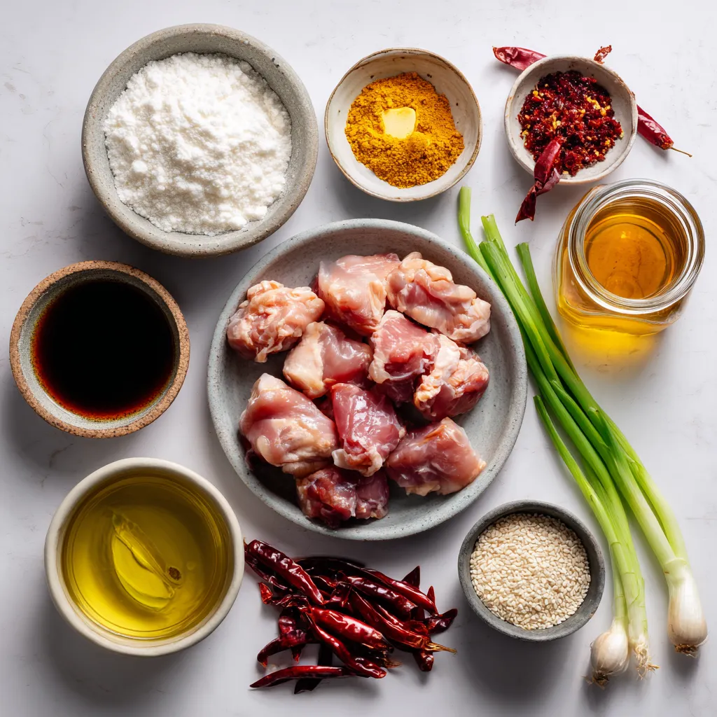 Start by cutting 1 pound of boneless, skinless chicken thighs into bite-sized pieces. Place the chicken in a bowl. Next, add 1/2 cup of cornstarch. Coat the chicken pieces well with the cornstarch. Let the chicken sit for about 10 minutes. This helps the cornstarch stick better.