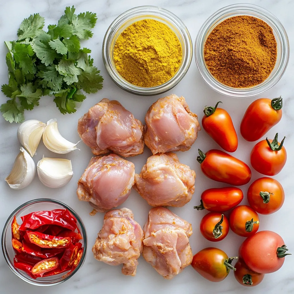 The heart of this easy Indian chicken curry lies in its main ingredients. Chicken thighs give you juicy bites. Coconut milk adds creaminess and a slight sweetness. Onions and garlic build a base of flavor that packs a punch.