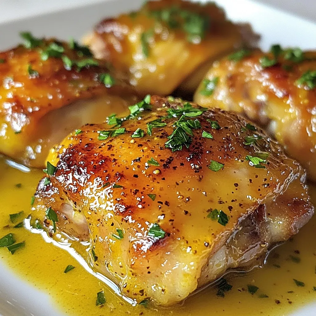 One common mistake is overcooking the chicken. This can lead to dryness. Always check the internal temperature; it should be 165°F (75°C). Another mistake is uneven seasoning. Make sure to coat each chicken thigh well with the mustard mix. This ensures every bite is packed with flavor.