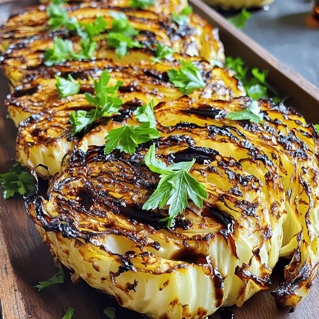 ![- Cabbage steaks and balsamic vinegar: The star of this dish is the cabbage. I like to use a large head of green cabbage. Slice it into thick steaks, about an inch each. Balsamic vinegar adds a rich tangy flavor that pairs well with the cabbage. - Olive oil and garlic: I use olive oil to help the cabbage roast nicely. It also gives a nice depth of flavor. Fresh minced garlic gives it a strong and bold taste. You need about four cloves for this recipe. - Additional spices and seasoning: I add smoked paprika and dried oregano. They bring warmth and earthiness to the dish. A sprinkle of salt and pepper enhances all the flavors. - Fresh parsley and other herbs: I love to top my cabbage steaks with fresh chopped parsley. It adds a pop of color and freshness. You can also try other herbs, like thyme or basil. - Parmesan cheese or chili flakes for added flavor: If you want to add a little zest, sprinkle some chili flakes. For a rich finish, grated Parmesan cheese works wonderfully too. This simple mix of ingredients creates a flavorful roasted dish that is both satisfying and visually appealing. For the complete recipe, check out the [Full Recipe]. First, preheat your oven to 400°F (200°C). This high heat helps create a nice caramelization. Next, line a baking sheet with parchment paper. This makes cleaning easy later. Now, grab a large head of green cabbage. Remove the outer leaves, as they can be tough. Slice the cabbage into 1-inch thick steaks. You should get about 4 to 6 steaks, depending on the cabbage size. In a small bowl, whisk together the following ingredients: - 4 tablespoons balsamic vinegar - 3 tablespoons olive oil - 4 cloves garlic, minced - 1 teaspoon dried oregano - 1 teaspoon smoked paprika - Salt and pepper to taste This mixture adds a punch of flavor. Make sure it’s well mixed. Take your cabbage steaks and place them on the prepared baking sheet. Use a brush to coat both sides generously with the balsamic-garlic mixture. This will ensure every bite is tasty. Roast the cabbage steaks in the preheated oven for 25 to 30 minutes. Flip them halfway through cooking. They should become tender and caramelized at the edges. Once done, take them out and let them cool for a few minutes. Garnish with fresh chopped parsley before serving. This adds a nice pop of color to your dish. For the full recipe, refer to the earlier section. - Achieving perfect caramelization To get that rich, sweet flavor, you want the edges of your cabbage steaks to caramelize. Brush them well with the balsamic-garlic mixture. The sugar in the balsamic helps form a nice crust. Roast them at 400°F for about 25 to 30 minutes. Flip them halfway through for even browning. - Ensuring even cooking Slice your cabbage steaks about 1-inch thick. If they are too thin, they might burn. If they are too thick, they may not cook through. Use a sharp knife for clean cuts. This helps them cook evenly and become tender. - Best accompaniments for cabbage steaks Cabbage steaks go well with many dishes. Serve them alongside grilled chicken or fish for a hearty meal. They also pair nicely with grains like quinoa or rice. For a complete vegetarian dish, add roasted chickpeas. - Ideal plating and presentation styles To make your dish pop, use a large platter. Place the cabbage steaks in a circle. Drizzle leftover balsamic-garlic mixture on top. Finish with a sprinkle of fresh parsley for color. This makes your plate look bright and fresh. For the detailed method on how to make this dish, check out the Full Recipe. {{image_2}} You can easily adjust the flavor of garlic balsamic cabbage steaks. Try adding extra spices to bring out new tastes. For a smoky kick, add more smoked paprika. If you like heat, sprinkle on some chili flakes. You can also play with herbs. Fresh thyme or rosemary can give a nice twist. Adding other vegetables can enhance your dish too. Think about slicing some carrots or bell peppers. These vegetables roast well and add color. You could even mix in some sliced onions for sweetness. Each variation brings a unique taste to your meal. If you want to swap out oils or vinegars, you have options. Instead of olive oil, try avocado oil for a lighter taste. You can also use apple cider vinegar for a fruity zing. Both of these options work well in this recipe. For garnishes, consider vegan options. Nutritional yeast can add a cheesy flavor without dairy. You can also use sunflower seeds for a nice crunch. This way, you keep the dish plant-based and tasty. Check the [Full Recipe] for all the details to make these variations shine. To keep your Garlic Balsamic Cabbage Steaks fresh, store leftovers properly. First, let the cabbage steaks cool down to room temperature. Then, place them in an airtight container. This helps keep moisture in and prevents them from drying out. I recommend using glass containers or BPA-free plastic ones. These types help with food safety and keep flavors intact. When it's time to enjoy your leftovers, reheating is key. The best methods include using an oven or an air fryer. Both methods keep the cabbage steaks crispy and flavorful. Preheat your oven to 350°F (175°C) and place the steaks on a baking sheet. Heat for about 10-15 minutes. If you use an air fryer, set it to 350°F (175°C) for about 5-7 minutes. This method keeps the texture just right. Avoid the microwave if you can, as it may make the steaks soggy. Can I use other types of cabbage? Yes, you can use other types of cabbage. Napa cabbage or red cabbage works well too. Each type has a different taste and color. Feel free to experiment! Just keep the thickness of the steaks about one inch. How do I know when the cabbage steaks are done? Cabbage steaks are done when they feel tender and have a nice caramel color. You can check them with a fork. If it goes in easily, they are ready. I usually roast them for about 25 to 30 minutes, flipping halfway. Caloric content and nutritional benefits Cabbage is low in calories but high in nutri
