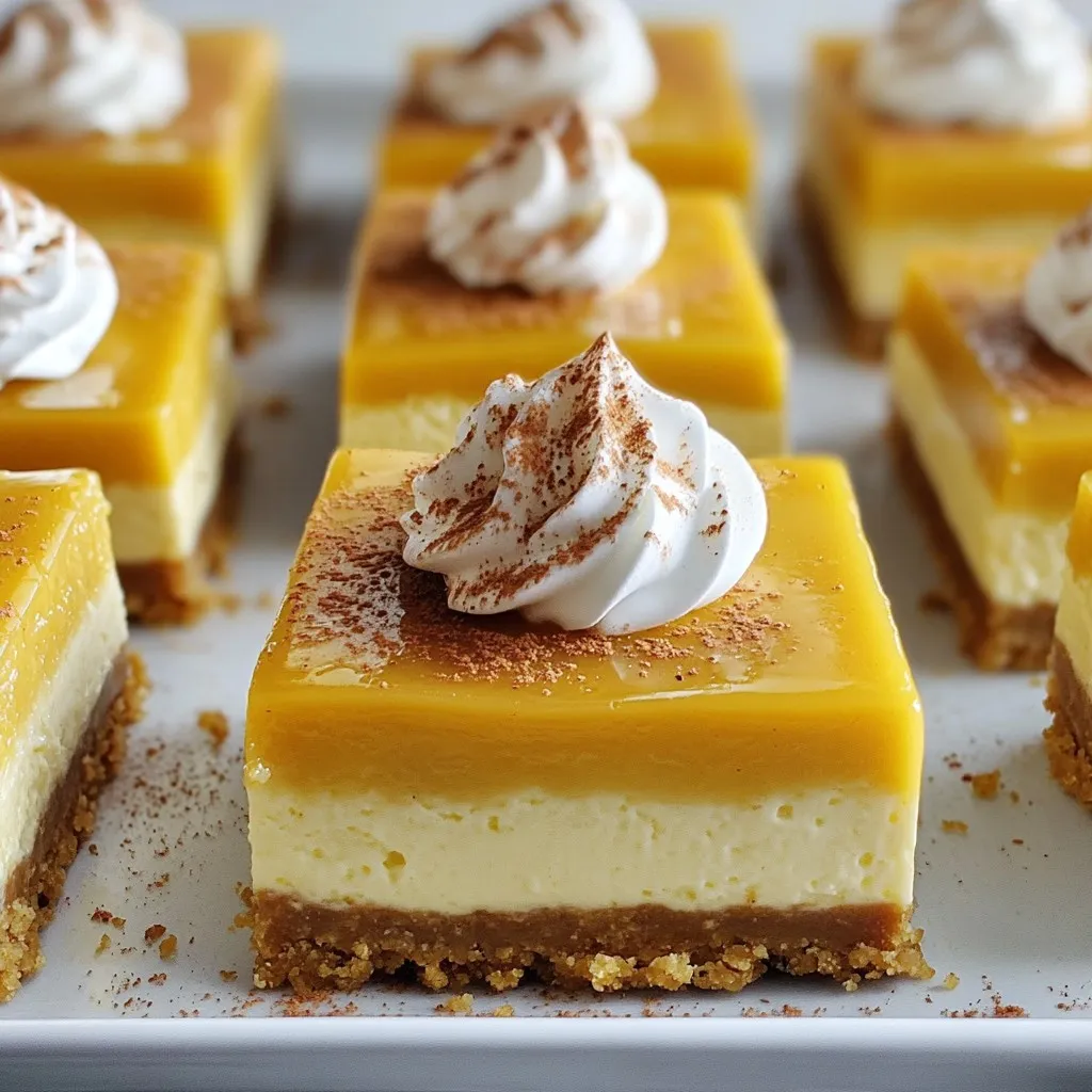 Deliciously spiced cheesecake bars with a graham cracker crust, perfect for the holiday season.