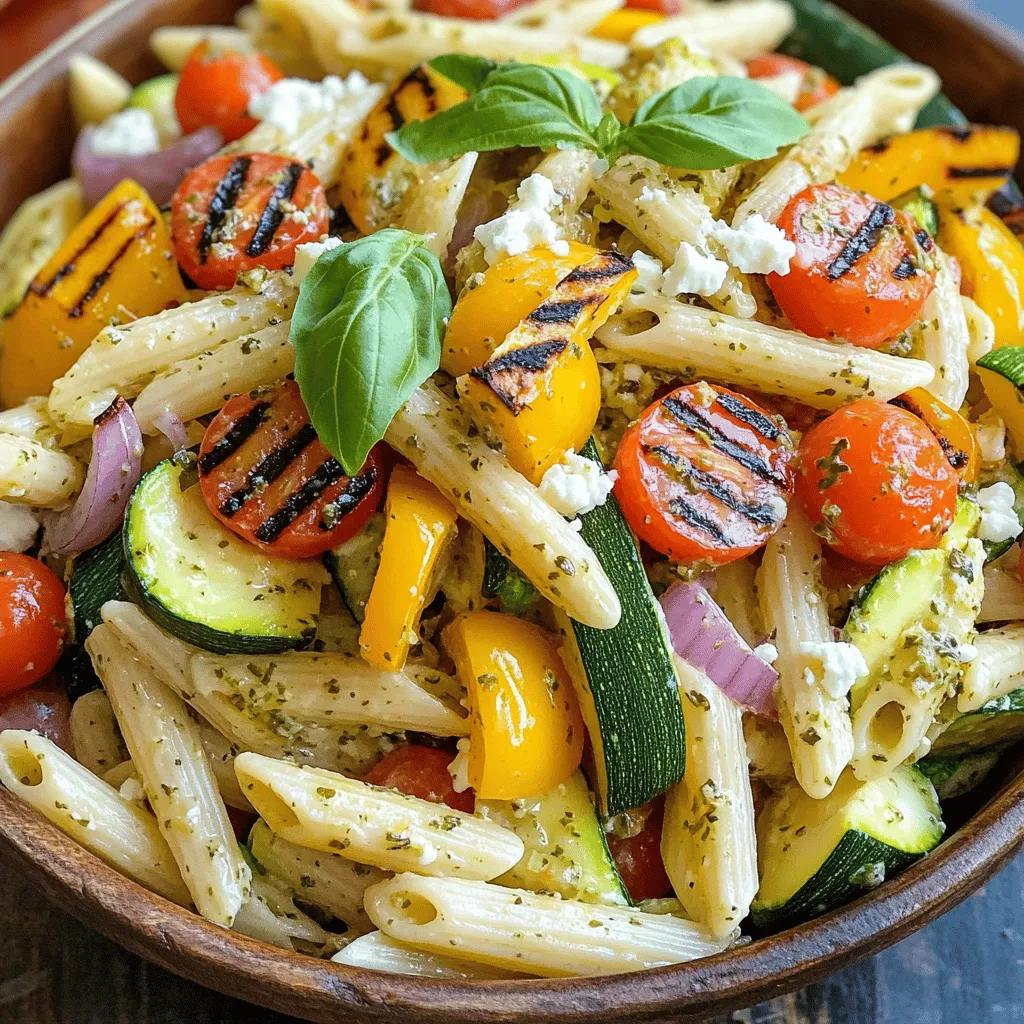 Pasta and Vegetables Needed - 8 ounces of penne pasta - 1 zucchini, sliced - 1 bell pepper (any color), sliced - 1 red onion, cut into wedges - 1 cup cherry tomatoes, halved In this salad, the pasta acts as a base. I love using penne since its shape holds the dressing well. The veggies add color, taste, and nutrients. Grilled zucchini, bell pepper, red onion, and juicy cherry tomatoes are my favorites. Seasoning and Dressing Essentials - 2 tablespoons olive oil - 1 teaspoon dried Italian herbs (oregano, basil, thyme blend) - Salt and pepper to taste The olive oil adds richness. The dried herbs give the salad a nice Italian flavor. Salt and pepper bring out all the tastes. Optional Ingredients for Enhanced Flavor - 1/4 cup feta cheese, crumbled (optional) - Fresh basil leaves for garnish Feta cheese adds a creamy texture and tangy taste. Fresh basil gives a lovely aroma and brightness, making the dish even better. For the full recipe, check out [Full Recipe]. Boiling the Penne Pasta Start by bringing a large pot of salted water to a rolling boil. Add your penne pasta and cook it according to the package instructions. Usually, this takes about 10-12 minutes. Tips for Achieving Perfect Al Dente To get that perfect al dente texture, taste the pasta a minute or two before the time is up. It should be firm yet tender. Once you hit that sweet spot, drain the pasta right away. Cooling the Pasta for Salad After draining, spread the pasta on a baking sheet to cool quickly. This helps avoid clumping. Let it sit while you prepare the veggies. Prepping the Vegetables for Grilling While the pasta cooks, get your veggies ready. Slice the zucchini and bell peppers. Cut the red onion into wedges. Halve the cherry tomatoes. Seasoning Tips for Flavor In a bowl, toss the veggies with olive oil, dried Italian herbs, salt, and pepper. This mix adds a burst of flavor. Grilling Technique and Timing Preheat your grill or grill pan over medium heat. Place the seasoned vegetables on the grill. Grill for about 4-5 minutes on each side. You want nice grill marks and tender veggies. Combining Cooked Pasta and Grilled Vegetables In a large mixing bowl, combine the cooled pasta and chopped grilled vegetables. Toss gently to mix them well. Adding Optional Ingredients like Feta If you like, sprinkle crumbled feta cheese over the top. This adds a creamy texture and a salty kick. Toss again to incorporate. Allowing the Salad to Chill Let the salad chill in the fridge for at least 30 minutes. This helps all the flavors blend together. Serve cold or at room temperature. Enjoy this colorful delight! For the complete recipe, check [Full Recipe]. - Choosing the Right Grill Temperature: Aim for medium heat. This allows vegetables to cook evenly. Too hot and they burn; too cool and they won't char. - Signs of Perfectly Grilled Vegetables: Look for nice grill marks. The veggies should be tender but not mushy. They should also have a smoky aroma that signals great flavor. - Avoiding Common Grilling Mistakes: Don't overcrowd the grill. This can trap steam and prevent charring. Always use fresh vegetables for the best taste. - Enhancing Flavor with Dressings: A simple vinaigrette works wonders. Use olive oil, vinegar, and herbs to boost flavor. You can also try lemon juice for a fresh kick. - Tips for Serving Cold or at Room Temperature: Chill the salad for at least 30 minutes before serving. This helps the flavors blend nicely. If serving at room temp, let it sit out for a bit. - Adjusting Portions and Ingredients for Large Gatherings: Double or triple the recipe as needed. Just keep the same ratios for ingredients. This way, everyone enjoys the same great taste. For more detailed steps, check out the Full Recipe. {{image_2}} You can switch up the vegetables in your grilled vegetable pasta salad. Try seasonal veggies for new flavors. Asparagus, eggplant, and mushrooms can add great taste. You can also use fresh greens like spinach or arugula for a twist. Adding protein makes this dish heartier. Grilled chicken or tofu works well. Simply marinate them before grilling. This adds depth to your flavors and makes the salad more filling. Don't forget about pasta shapes! Penne is great, but you can use fusilli or farfalle too. Different shapes hold the dressing better and add fun to your meal. When it comes to dressings, you have options. You can make your own or use store-bought. Homemade dressings let you control the flavors. Try a simple vinaigrette with olive oil and vinegar for a fresh taste. Creamy options like ranch or yogurt dressings can add richness. These pair well with grilled veggies and pasta. Experiment with herbs like dill or cilantro for unique flavors. Different dressings can change the whole vibe of your salad. A zesty lemon vinaigrette gives a bright taste. On the other hand, a balsamic glaze offers sweetness. Play around with flavors to find what you love most. For the full recipe, check out the detailed instructions above. To keep your grilled vegetable pasta salad fresh, use airtight containers. Glass or BPA-free plastic containers work best. Make sure the salad is cool before sealing it up. Store the salad in the fridge for up to three days. After that, the veggies may lose their crunch and flavor. If you want to keep it longer, freezing is an option. However, the texture of the pasta and veggies may change. To freeze, place the salad in a freezer-safe container. Leave some space at the top because it will expand. You can freeze it for one to two months. When you're ready to eat, thaw it in the fridge overnight. Reheating pasta salad can be tricky. You want to keep the flavors bright. For best results, gently heat it in a skillet over low heat. This way, it warms up without cooking the pasta again. After reheating, taste the salad. You might need to add more salt or pepper. Sometimes the flavors fade a bit during storage. If you want to serve it cold, take it out of the fridge and let it sit for a few minutes. It ta