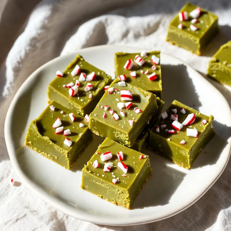 Arrange the fudge squares on a festive plate and sprinkle extra crushed peppermint on top for added decoration.