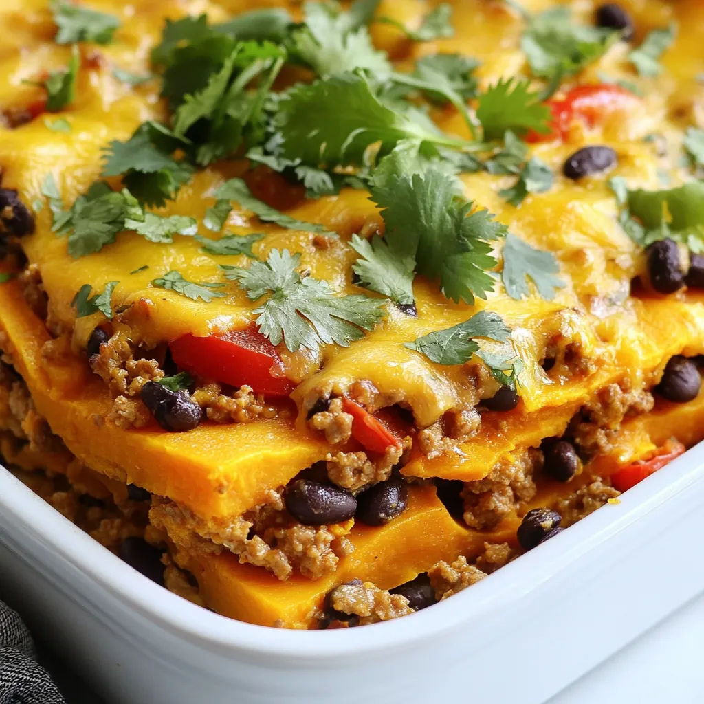 After baking, remove the dish from the oven. Let it cool slightly before serving. Garnish with fresh cilantro to add a pop of color and flavor. Enjoy your delicious Ground Turkey Sweet Potato Bake!