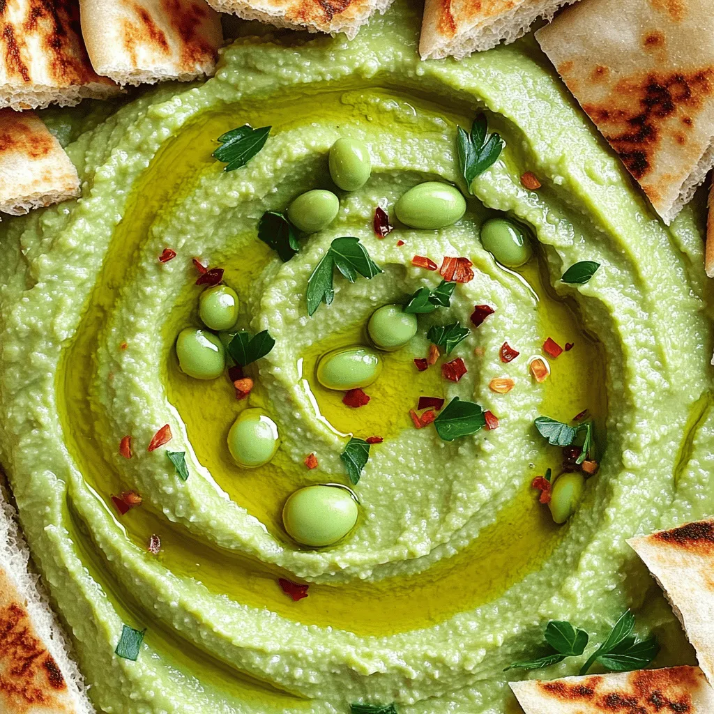 To make this tasty hummus, gather these key items: - 1 cup shelled edamame (fresh or frozen) - 2 tablespoons tahini - 2 tablespoons olive oil - 1 garlic clove, minced - 2 tablespoons lemon juice - 1/2 teaspoon ground cumin - Salt and pepper to taste - 1/4 cup water (or more for desired consistency) These ingredients create a creamy, protein-rich hummus. Edamame is packed with nutrients and gives this dip its bright green color. Tahini adds a nutty flavor, while lemon juice gives it a fresh zing. For the pita, you will need: - 4 whole wheat pita breads, cut into triangles These pita breads are perfect for dipping. Their whole grain nature also makes them a healthier choice. To spice things up, consider adding: - Fresh parsley, for garnish - Red pepper flakes for a spicy kick The parsley adds color and freshness. If you like a bit of heat, sprinkle some red pepper flakes on top of your hummus. This adds an exciting twist to your dish. First, if you have frozen edamame, steam it. Follow the package steps. This takes about 3 to 5 minutes. If you use fresh edamame, remove the pods and rinse them well. The edamame should be tender and bright green. This gives the hummus a fresh taste. Next, grab a food processor. Add the steamed edamame, tahini, olive oil, minced garlic, lemon juice, ground cumin, salt, and pepper. Blend these together. As you blend, slowly add water. Keep blending until the mixture is smooth and creamy. You can add more water if you want a thinner texture. After blending, taste the hummus. Adjust the salt, pepper, or lemon juice as needed for your taste. Now it's time to serve! Transfer the hummus to a bowl. Drizzle some olive oil on top for extra flavor. If you like a little spice, sprinkle red pepper flakes over the hummus. For the pita, you can serve it cold or warm. To warm it, pop the pita in a toaster or oven until it's lightly crisp. Cut the pita into triangles and arrange them around the bowl of hummus. Finish by garnishing with fresh parsley. Enjoy this tasty, high-protein snack! To make smooth hummus, start with cooked edamame. I love using fresh or frozen. If frozen, steam it first. You want it soft but not mushy. In the food processor, mix edamame with tahini, olive oil, garlic, lemon juice, cumin, salt, and pepper. Blend while adding water. Use a little at a time. Keep blending until you reach the smoothness you want. If it’s too thick, add more water. If it’s too runny, you can add more edamame. Pita bread is best served warm. You can toast it for a crispier bite. Cut the pita into triangles for easy dipping. Arrange the triangles around your hummus. This way, guests can grab them easily. If you want, serve it with a side of fresh veggies for more crunch. To make your hummus pop, think about adding spices. A pinch of red pepper flakes gives heat. Fresh herbs like cilantro or basil can add freshness. You could also try roasted garlic for a sweeter taste. For a nutty twist, sprinkle some toasted sesame seeds on top. These simple tweaks can elevate your dish! {{image_2}} High-protein edamame hummus packs a punch. Each serving provides about 7-8 grams of protein. Edamame comes from young soybeans, which are rich in protein. This makes the hummus a great snack for anyone wanting to add more protein to their diet. Protein helps build muscles and keeps you feeling full. It also plays a key role in your body's repair process. Adding this hummus to your meals can help with weight management and muscle growth. In addition to protein, edamame hummus is balanced in fats and carbs. Each serving has around 10 grams of healthy fats, mainly from olive oil and tahini. These fats support heart health and provide energy. The carbs in this hummus mainly come from edamame and whole wheat pita. They offer a good source of energy while being high in fiber. This fiber helps with digestion and keeps you feeling full longer. Edamame hummus is not only tasty but also nutrient-rich. It contains several important vitamins and minerals: - Vitamin K: Supports bone health. - Folate: Important for cell growth and metabolism. - Iron: Essential for transporting oxygen in the blood. - Magnesium: Helps with muscle and nerve function. These nutrients make this hummus a smart choice for anyone looking to eat healthy. Enjoy it as a snack or part of a meal for a boost of goodness. Want a kick? Add red pepper flakes to your hummus. This spice brings heat and flavor. Start with 1/4 teaspoon and taste. You can always add more! For a bolder spice, blend in a dash of hot sauce. This gives a nice zing. Herbs can change the taste of your hummus. Try fresh basil for a sweet, fresh flavor. Cilantro adds a bright twist. You can also use dill for a unique taste. Simply add one handful of your chosen herb to the blender. It makes a big difference! Pita is great, but you have options! Serve with veggie sticks for a crunchy bite. Carrots, cucumbers, and bell peppers work well. You can also try whole grain crackers for a different crunch. For a fun twist, spread hummus on sandwiches. This adds protein and flavor to your meal. Yes, you can use frozen edamame. Just steam it for about 3 to 5 minutes. This makes it tender and easy to blend. I often use frozen edamame for its convenience. It saves time and still tastes great. You can store edamame hummus in the fridge for up to a week. Make sure to keep it in an airtight container. If you want to keep it longer, freeze it for up to three months. Just thaw it before serving and give it a quick stir. The best dishes to serve with edamame hummus include whole wheat pita bread, fresh veggies, or crackers. You can also pair it with grilled chicken or fish for a hearty meal. This hummus goes well with almost anything! Edamame hummus is simple to make and packed with nutrients. We covered the main and optional ingredients that create rich flavors. I shared helpful steps to prepare, blend, and serve your hummus with pita. Tips on achieving perfect consistency and enhancing fl