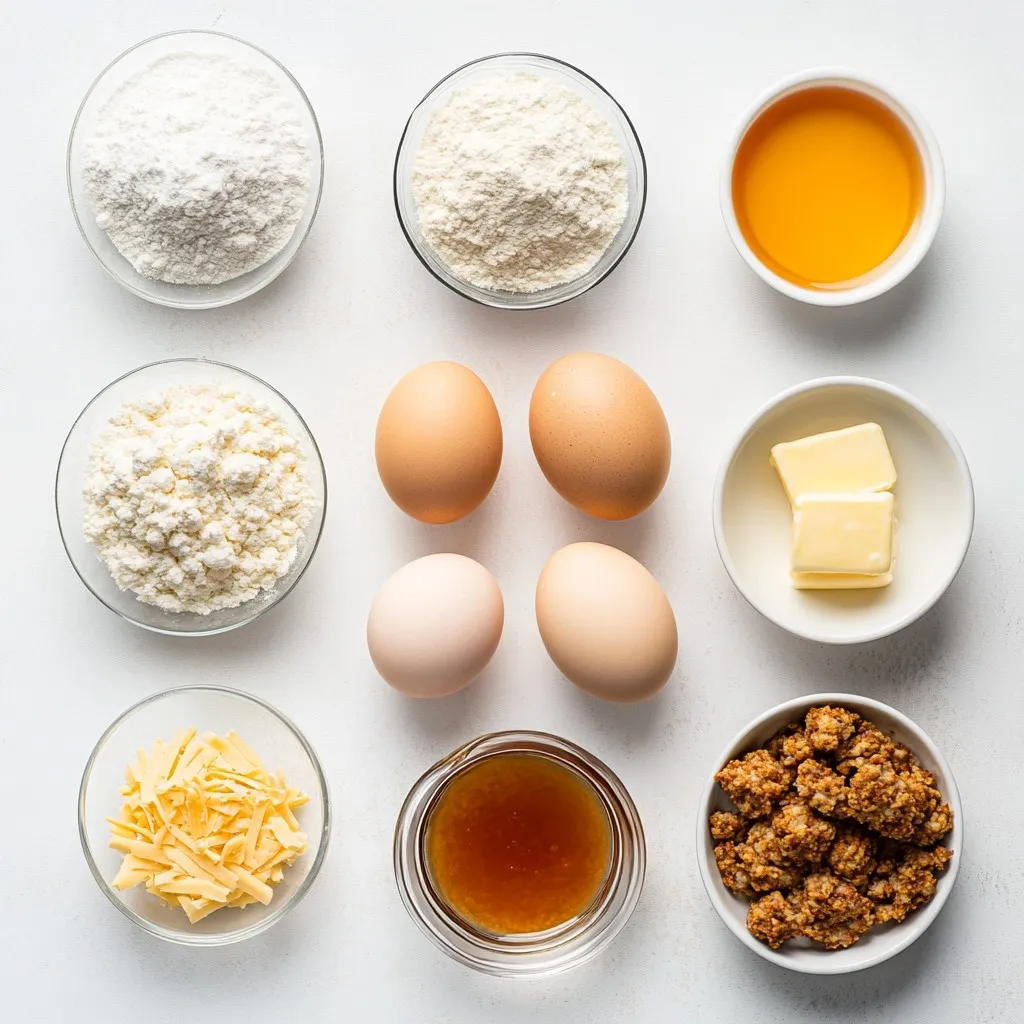 To start, grab a large mixing bowl. In it, whisk together 2 cups of all-purpose flour, 2 tablespoons of baking powder, 1 tablespoon of sugar, and 1/2 teaspoon of salt. This mix forms the base of your muffins. Next, in another bowl, combine 1 cup of milk, 1/4 cup of melted butter, 1/4 cup of maple syrup, and 2 large eggs. Whisk these until they blend well. Then, pour the wet mixture into the dry ingredients. Stir gently until just combined. Remember, don’t overmix or your muffins will be tough. Now, fold in 1 cup of crumbled breakfast sausage and 1 cup of shredded cheddar cheese. This adds flavor and texture.