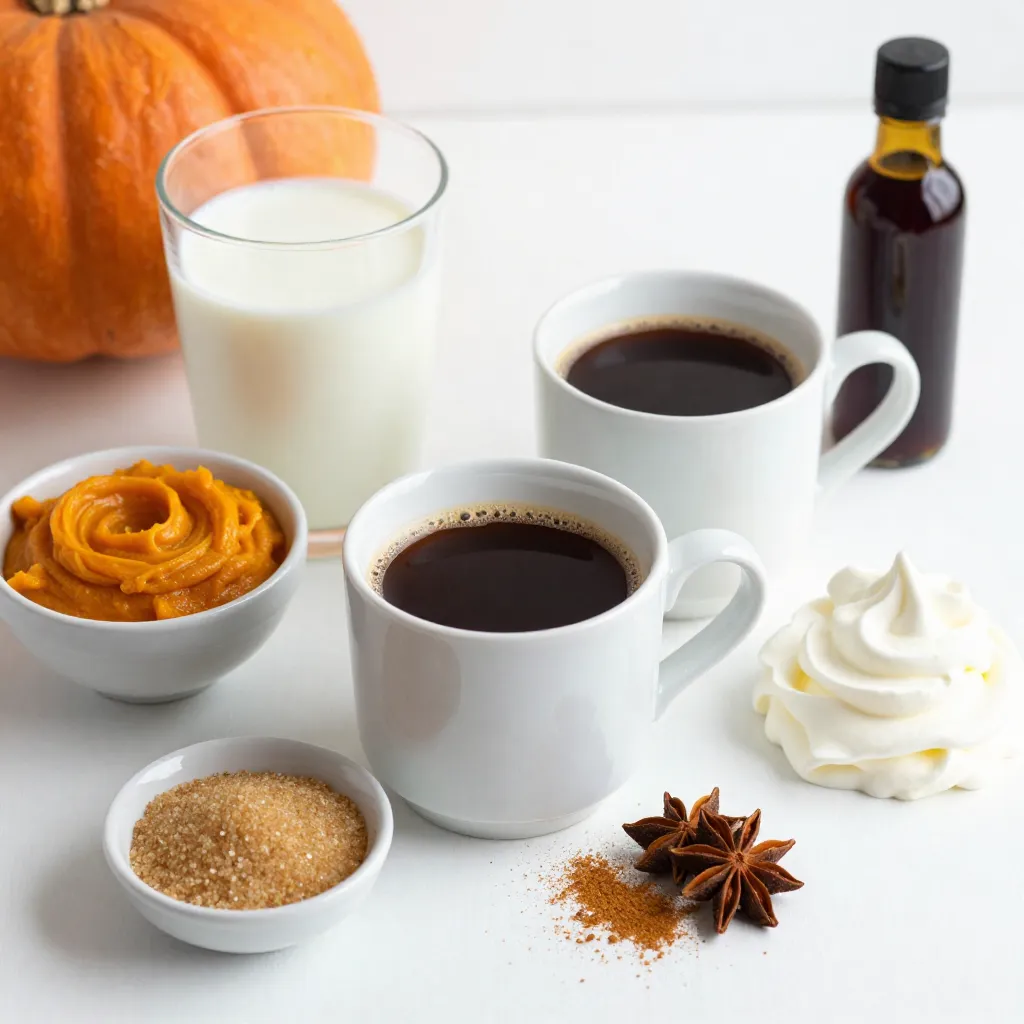 - 2 cups milk (any kind, or a milk alternative) - 1 cup brewed strong coffee or espresso - 2 tablespoons pumpkin puree - 1 tablespoon sugar (adjust to taste) - 1/2 teaspoon pumpkin pie spice (plus extra for garnish) - 1/4 teaspoon vanilla extract - Whipped cream (for topping) To make a great pumpkin spice latte, you need simple ingredients. Each one plays a part in creating rich flavors. The milk can be any type you like. You can choose whole, skim, or even a nut milk. The coffee should be strong. Espresso works well, but brewed coffee is fine too. Pumpkin puree gives the drink its base flavor. You can use canned pumpkin or make your own. Sugar adds sweetness. You can adjust it to your taste. Pumpkin pie spice combines warm flavors. It usually has cinnamon, nutmeg, and ginger. Finally, whipped cream makes it feel special. It's the perfect touch on top! Gather these ingredients, and you’re ready to make a cozy drink. Enjoy each sip as it warms you up! {{ingredient_image_1}} First, take a small saucepan and pour in 2 cups of milk. Heat it over medium heat. Stir the milk occasionally. You want it to steam but not boil. Next, add 2 tablespoons of pumpkin puree. Sprinkle in 1 tablespoon of sugar and 1/2 teaspoon of pumpkin pie spice. Don’t forget 1/4 teaspoon of vanilla extract! Whisk these together until smooth and well mixed. When your milk mixture is ready, it’s time to froth it. You can use an immersion blender or a frother for this. If you don’t have either, grab a whisk. Vigorously whisk the mixture until it becomes frothy. This adds a nice texture to your drink. In a large mug, pour 1 cup of strong brewed coffee or espresso. Then, slowly add the hot pumpkin milk mixture on top. Stir gently to combine the two. This creates a rich and cozy drink. Top it with whipped cream and a sprinkle of extra pumpkin pie spice. Enjoy your homemade pumpkin spice latte! To change the sweetness of your latte, start with less sugar. You can taste the mix after adding sugar and add more if needed. Use maple syrup or honey for a different taste. For the pumpkin spice flavor, add more or less pumpkin pie spice. If you want it stronger, try one teaspoon instead of half. Remember, the balance of sweetness and spice is key to a great latte. For a vegan pumpkin spice latte, use almond, oat, or coconut milk. These milk options create a creamy texture and taste great. If you want whipped cream, look for coconut whipped cream or almond-based versions. They will top your latte perfectly and keep it vegan. Just make sure to check the labels for any added ingredients. A good presentation can make your latte feel special. Top your latte with a generous amount of whipped cream. Then, sprinkle some pumpkin pie spice on top for a pretty look. You can also add a cinnamon stick for a cozy touch. Serve your latte in a warm mug or a clear glass to show off the layers. This makes your drink inviting and fun to enjoy! Pro Tips Use Fresh Pumpkin Puree: For the best flavor, use homemade or canned pure pumpkin without additives. Fresh puree offers a richer taste that enhances your latte. Adjust Sweetness to Taste: Feel free to modify the sugar amount based on your preference. You can also substitute with maple syrup or honey for a different flavor profile. Experiment with Milks: Try different types of milk, such as almond, oat, or coconut, to find your favorite combination. Each adds a unique taste and texture to the drink. Make It Ahead: Prepare a larger batch of the pumpkin milk mixture and store it in the refrigerator for up to a week. Just reheat and add to your coffee for a quick treat! {{image_2}} To make an iced pumpkin spice latte, start by brewing strong coffee or espresso. Use cold milk instead of heated milk. Pour the cold milk over ice in a glass, then add the coffee. Mix in pumpkin puree, sugar, and pumpkin pie spice. Stir well and enjoy this cool treat. Add whipped cream on top for extra creaminess. You can also sprinkle more pumpkin pie spice for a lovely finish. For a mocha twist, add cocoa powder to your pumpkin spice latte. Use about one tablespoon of cocoa for every cup of coffee. Mix it well with the pumpkin puree and sugar. This blend adds a rich chocolate flavor to your drink. You may want to adjust the sugar to balance the sweetness. The mocha pumpkin spice latte offers warmth and comfort in each sip. If you prefer tea, try a pumpkin spice chai latte. Replace coffee with brewed chai tea. Use two cups of strong chai tea for a rich flavor. Mix in pumpkin puree, sugar, and pumpkin pie spice just like before. This blend creates a spicy, cozy drink that’s perfect for chilly days. You can experiment with the chai spices to make it your own. To store your leftover pumpkin spice latte, pour it into a clean jar. Make sure to leave some space at the top. This allows for expansion when it cools. Seal the jar tightly with a lid. Store it in the fridge for up to three days. The flavors get better with time, but it's best to drink it fresh. When you’re ready to enjoy your latte again, pour it into a saucepan. Heat it over low heat. Stir gently to warm it up without boiling. If you want to keep the froth, use a milk frother or an immersion blender after heating. This keeps the creamy texture. You can also whisk it well if you don’t have those tools. Enjoy your cozy drink warm! You can add more sugar to taste. Try using brown sugar for a deeper flavor. Honey or maple syrup also work well. You can use flavored syrups too. Vanilla or caramel syrups add a nice touch. Just stir in your sweetener before you pour the milk mixture. Taste it to find the right sweetness for you. Yes, you can make a tasty pumpkin latte without coffee. Try using steamed milk or a milk alternative. You can add a bit of chai tea for spice. Herbal teas also work well for a caffeine-free drink. Just heat your milk, mix in pumpkin and spices, then enjoy it warm. This way, you still get all the cozy flavors. If you don’t have pumpkin puree, 