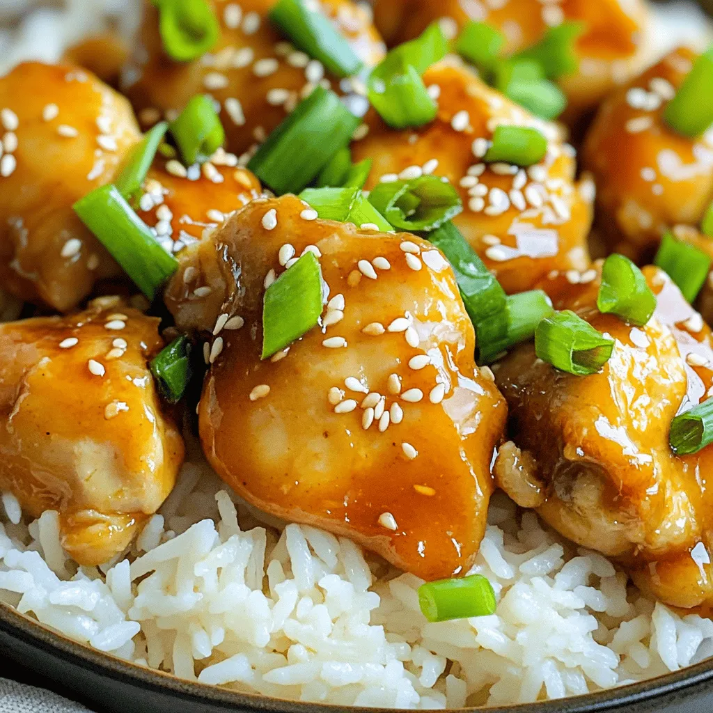 To make honey sesame chicken, you need these key ingredients: - 500g boneless chicken thighs, cut into bite-sized pieces - 3 tablespoons honey - 2 tablespoons soy sauce - 1 tablespoon sesame oil - 2 cloves garlic, minced - 1 tablespoon fresh ginger, grated - 1 tablespoon cornstarch - 1 tablespoon water - 1/4 cup sesame seeds - 2 green onions, chopped - Salt and pepper to taste These ingredients create a great balance of sweet and savory. The honey gives a nice glaze, while the soy sauce adds depth. The sesame oil brings warmth, and garlic and ginger add a fragrant kick. You can add more ingredients to boost the flavor: - Red pepper flakes for spice - Chopped bell peppers for crunch - Broccoli for a pop of color - Pineapple chunks for sweetness These extras can make your dish more vibrant and fun. To round out your meal, consider these side dishes: - Steamed broccoli for a healthy touch - Fried rice for a heartier option - A fresh salad for a light contrast These sides complement the sweetness of the chicken and add balance to your plate. Enjoy each bite! Start by making the marinade. In a large bowl, mix 3 tablespoons of honey, 2 tablespoons of soy sauce, and 1 tablespoon of sesame oil. Add 2 cloves of minced garlic and 1 tablespoon of grated ginger. Whisk the ingredients well until combined. Next, cut 500 grams of boneless chicken thighs into bite-sized pieces. Toss the chicken into the marinade. Make sure each piece is coated. Let the chicken marinate for at least 30 minutes. For more flavor, refrigerate it for up to 2 hours. Heat a large skillet over medium-high heat. Once hot, add the marinated chicken along with the marinade. Cook the chicken for about 5 to 7 minutes. Stir occasionally until the chicken is cooked through and slightly caramelized. The chicken should have a nice golden color. In a small bowl, mix 1 tablespoon of cornstarch with 1 tablespoon of water to make a slurry. Pour this mixture into the skillet with the chicken. Stir gently to combine and thicken the sauce. Cook for an additional 2 to 3 minutes. The sauce should become glossy and thickened. Sprinkle 1/4 cup of sesame seeds over the chicken. Stir to combine and cook for another minute to lightly toast the sesame seeds. Finally, season with salt and pepper to taste. Serve the chicken over cooked jasmine rice and garnish with chopped green onions. Marinating is key for great flavor. Use a large bowl for mixing. Combine honey, soy sauce, sesame oil, garlic, and ginger well. Toss in the chicken pieces and coat them fully. For best results, let the chicken sit for at least 30 minutes. If you have time, marinate for up to 2 hours in the fridge. This deepens the taste and makes the chicken tender. Cook your marinated chicken in a hot skillet. Use medium-high heat for even cooking. Add the chicken and marinade to the skillet. Stir occasionally to avoid sticking. Cook for 5 to 7 minutes until the chicken is fully cooked. Look for a slight caramelization for a nice finish. Remember, overcooking can make chicken dry, so keep an eye on it. Presentation matters, so make it look good! Serve the honey sesame chicken over jasmine rice. Sprinkle sesame seeds on top for a nutty crunch. Add chopped green onions for a fresh touch. You can also place extra sesame seeds around the dish for flair. For a pop of color, serve with steamed broccoli on the side. This not only looks great but also adds nutrients. {{image_2}} Adding vegetables to honey sesame chicken makes it more colorful and healthy. You can use bell peppers, broccoli, or snap peas. These veggies add crunch and nutrition. Just chop them into bite-sized pieces. Add them to the skillet when you cook the chicken. They will cook quickly and stay bright. It’s a great way to sneak in more vitamins. If you want to change the protein, try tofu or shrimp. Tofu works well for a plant-based option. Cut it into cubes and marinate just like the chicken. Cook it in the same way until it's golden. Shrimp cooks fast, so add them to the skillet for just 3-5 minutes. Both options keep the dish tasty and fun. You can switch up the sauce for new flavors. Try adding spicy chili sauce for heat. For a tangy twist, mix in orange juice or zest. If you enjoy a richer taste, add hoisin sauce. Each sauce gives honey sesame chicken a unique flair. Experiment and find your favorite! To store leftovers, let the honey sesame chicken cool to room temperature. Transfer it to an airtight container. Place parchment paper between layers if you stack the chicken. This prevents sticking and keeps it fresh. Store it in the fridge for up to three days. When you're ready to eat the leftovers, reheating is easy. You can use a microwave or a skillet. If using a microwave, cover the chicken with a damp paper towel. Heat it in 30-second bursts until warm. If using a skillet, add a splash of water to prevent sticking. Warm it over low heat for about 5 minutes. If you want to freeze the dish, do so before reheating. Place the cooled chicken in a freezer-safe container. Make sure to remove excess air to avoid freezer burn. It can stay in the freezer for up to three months. To thaw, move it to the fridge overnight before reheating. Enjoy your honey sesame chicken later! Yes, you can use chicken breast. Chicken breast is leaner than thighs. It cooks faster, so watch the time. You may need to adjust the cooking time to avoid dryness. Thighs are juicier and more tender, but breasts work too. To make this dish gluten-free, use tamari instead of soy sauce. Tamari is a gluten-free soy sauce alternative. Also, check that your cornstarch is gluten-free, which most brands are. You can enjoy this tasty dish without gluten. A chilled Riesling pairs well with honey sesame chicken. The wine's sweetness matches the honey. You could also try a Sauvignon Blanc for a crisp contrast. Both wines enhance the dish's flavors and make your meal special. This post shared how to make honey sesame chicken. You learned about the key ingredients, 