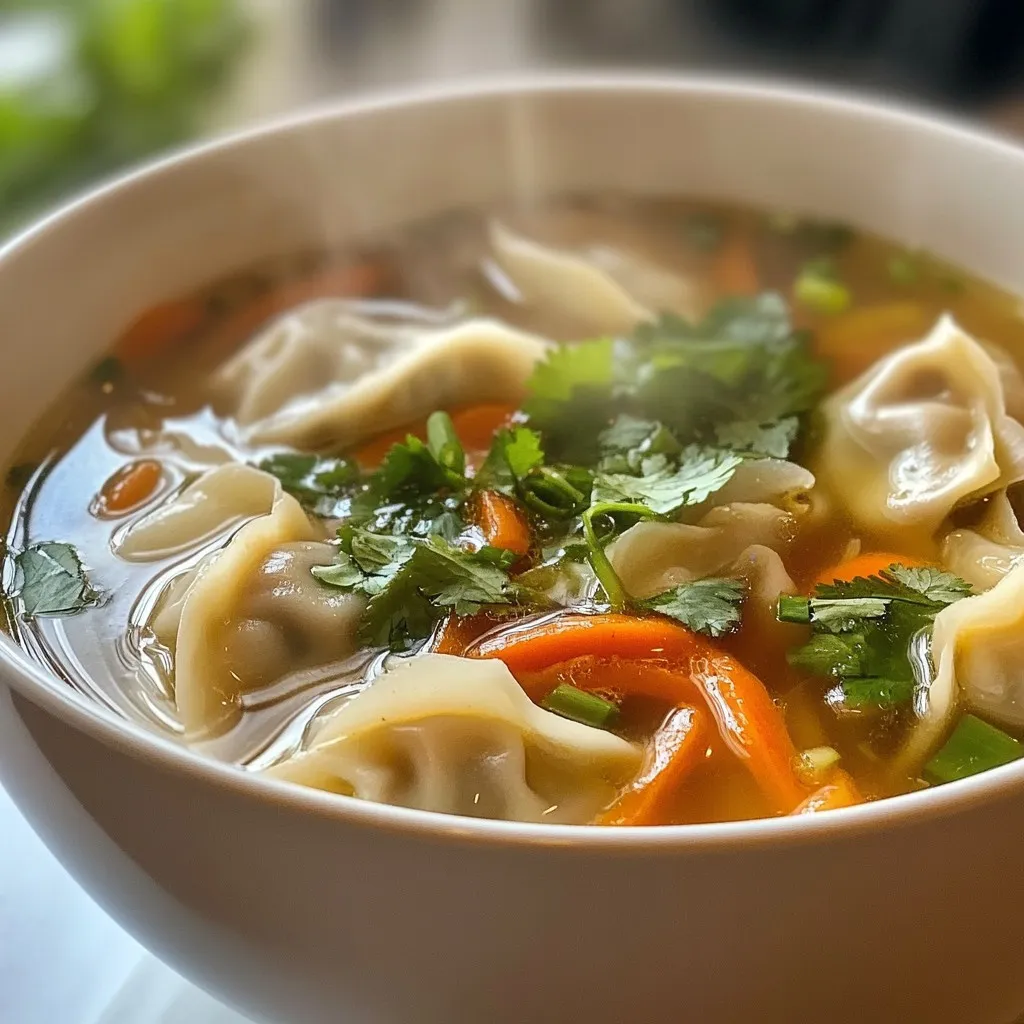 A comforting and flavorful soup featuring gyoza, mushrooms, and fresh vegetables.