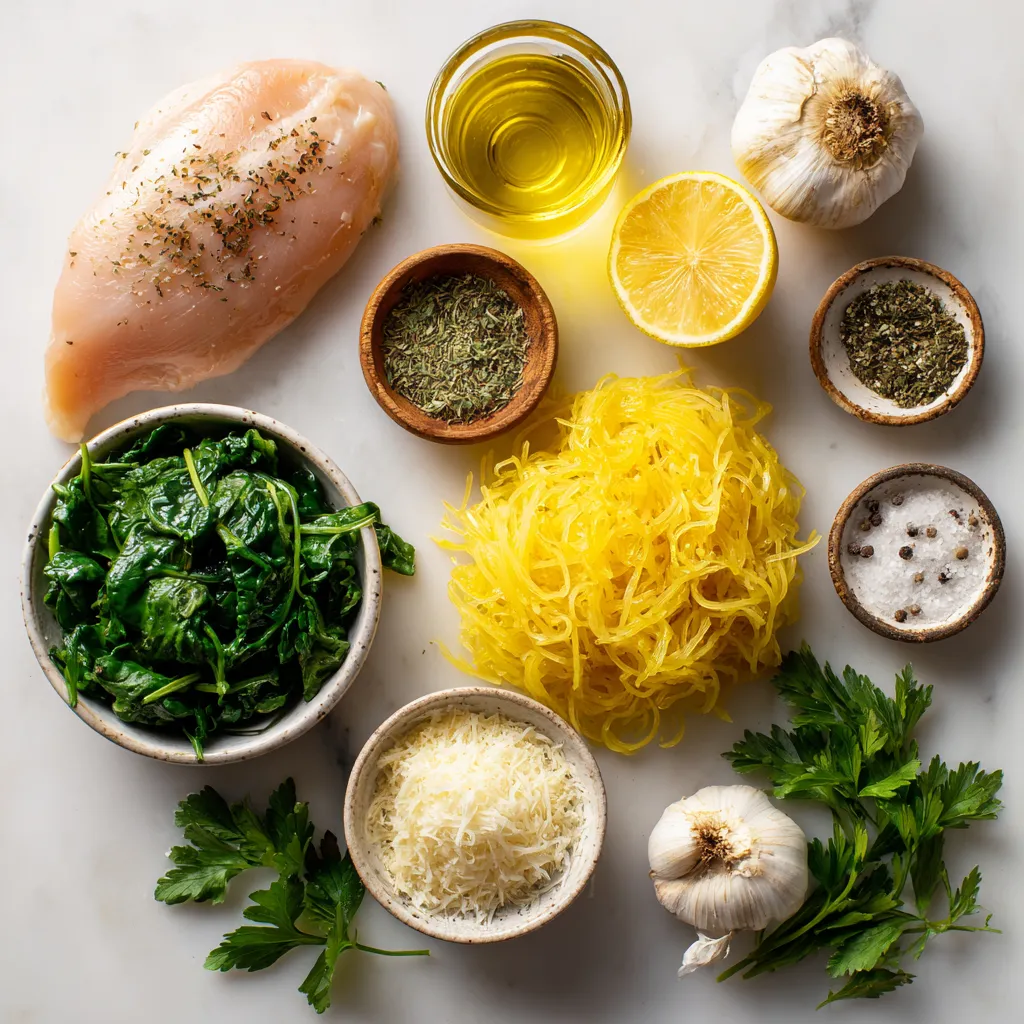 For my Lemon Chicken with Spaghetti Squash, I keep things simple yet flavorful. The chicken provides protein, while the spaghetti squash adds a fun twist to pasta. I love using olive oil for cooking, as it gives a nice rich taste. Fresh garlic and lemon bring brightness to the dish, making it vibrant and fresh. Dried oregano adds herbal notes that pair well with the chicken.