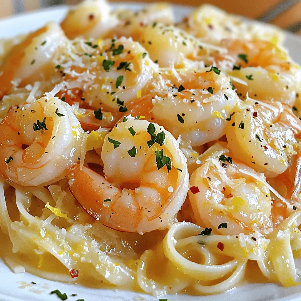 ![To make lemon garlic shrimp scampi, gather these key items: - 1 pound large shrimp, peeled and deveined - 4 tablespoons unsalted butter - 2 tablespoons olive oil - 4 cloves garlic, minced - Zest and juice of 2 lemons - Salt and pepper to taste - 8 oz linguine or spaghetti - Fresh parsley, chopped, for garnish These ingredients create a bright and tasty dish. The shrimp provides protein, while the lemon adds freshness. Butter and olive oil give the sauce a rich taste, and garlic brings a warm aroma. You can add some optional items for extra flavor: - 1 teaspoon red pepper flakes (for heat) - Grated Parmesan cheese (for serving) Red pepper flakes can spice up the dish. Parmesan cheese adds a creamy touch that many love. Feel free to adjust based on your taste! To prepare this dish, use these tools: - Large pot for boiling pasta - Large skillet for sautéing shrimp - Colander for draining pasta - Tongs or a spatula for mixing These tools help you cook efficiently. A large pot ensures the pasta cooks well, while a skillet allows for even cooking of the shrimp. Each tool plays an important role in making this dish a success. For the full recipe, check the instructions provided earlier. To start, fill a large pot with water. Add salt to the water; this helps flavor the pasta. Bring the water to a boil over high heat. Once boiling, add your linguine or spaghetti. Follow the package instructions and cook until it is al dente. This typically takes about 8 to 10 minutes. Drain the pasta in a colander, but save about one cup of the pasta water. This water is starchy and will help your dish later. Next, heat a large skillet over medium heat. Add the butter and olive oil to the skillet. Let them melt together. Once hot, add the minced garlic and red pepper flakes. Stir this mixture for about one minute. You want to smell that lovely garlic aroma. Now, add the shrimp in a single layer. Season them with salt and pepper. Cook the shrimp for about 2 to 3 minutes on each side. They should turn a lovely pink and opaque color when done. When the shrimp are cooked, it’s time to add some zing! Pour in the lemon zest and juice. Gently toss the shrimp in this mixture to coat them evenly. The lemon will brighten the dish and add a fresh taste. Now, add the cooked pasta to the skillet with the shrimp. Toss everything together well, mixing the pasta and shrimp. If the sauce feels too thick, add some of that reserved pasta water. This will help to achieve your desired sauce consistency. Now, you're ready to enjoy a delicious Lemon Garlic Shrimp Scampi! For the complete recipe, click on [Full Recipe]. When picking shrimp, look for a few key signs. Choose shrimp that smell fresh, like the sea. Their shells should be shiny and firm. If you see black spots, skip those shrimp. Fresh shrimp should be pinkish or gray, depending on the type. Always buy shrimp from trusted sources. If possible, ask about their catch date. It helps ensure you get the freshest shrimp for your dish. Shrimp cook quickly, so timing is key. I like to sauté shrimp for even cooking. Use medium heat and watch closely. Shrimp turn pink and opaque when done. This usually takes just 2 to 3 minutes per side. Avoid overcrowding your pan. Cook shrimp in batches if needed. This way, they sear nicely and don’t steam. For a different flavor, grill or broil shrimp. Both methods add a nice char. To boost flavor, consider adding herbs and spices. Fresh herbs like parsley and basil work great. A pinch of red pepper flakes gives a nice kick. For a richer taste, try adding white wine while cooking. It helps deglaze the pan and adds depth. You can also play with citrus. Lime or orange zest can add a fun twist. For the full recipe, check out the zestiness of lemon garlic shrimp scampi to see how these tips come together deliciously! {{image_2}} You can change up the sauce for your shrimp scampi. Instead of lemon, try lime for a fresh twist. Use white wine for more depth. Add a splash of soy sauce for a hint of umami. For a creamy touch, mix in some heavy cream. Each option gives the dish a new flavor. Need a gluten-free option? Swap out regular pasta for gluten-free linguine or zucchini noodles. You can also use cauliflower rice for a low-carb choice. If you don’t have shrimp, chicken or scallops work well too. Just adjust cooking times to match your ingredients. Boost the nutrition by adding veggies. Spinach, cherry tomatoes, or bell peppers blend nicely. Simply sauté them with the garlic before adding shrimp. You can also mix in cooked peas or asparagus for color and crunch. This makes your dish heartier and more colorful. Check out the Full Recipe for more details! After enjoying this dish, store your leftover shrimp scampi in an airtight container. Make sure to cool it down to room temperature first. Place it in the fridge, and it will stay fresh for up to three days. This keeps the flavors intact and ready for your next meal. To reheat shrimp scampi, use a skillet over low heat. Add a splash of olive oil or a bit of butter to prevent sticking. Gently warm it up, stirring occasionally. You can also use the microwave, but cover the dish. Heat it in short bursts to avoid overcooking the shrimp. If you want to save scampi for later, consider freezing it. Just place it in a freezer-safe container. It can last up to three months in the freezer. When you are ready to eat, thaw it overnight in the fridge. Reheat gently to keep the shrimp tender. For the full recipe, refer back to the earlier section. The best type of shrimp for scampi is large shrimp. I recommend using 16-20 count shrimp. This size cooks evenly and has a nice bite. You can use fresh or frozen shrimp. If you choose frozen, make sure to thaw them first. Always look for shrimp with a firm texture and a sweet smell. Yes, you can make Lemon Garlic Shrimp Scampi ahead of time. Cook the shrimp and sauce, then store them separately from the pasta. This helps keep the pasta from getting soggy. When yo