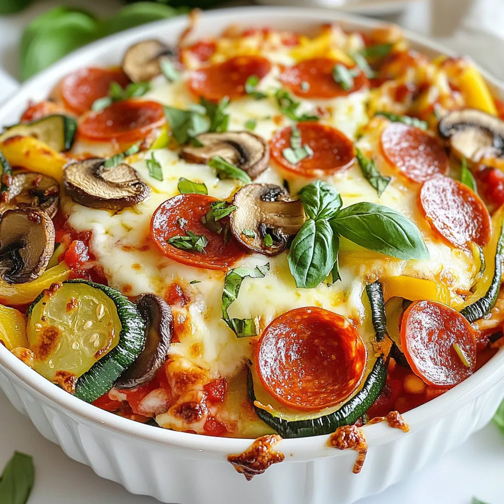 Each ingredient plays a role in making the dish flavorful. The zucchini gives a nice base, while bell peppers add crunch. Mushrooms bring earthiness, and tomatoes add freshness. Mozzarella cheese melts beautifully, creating a gooey layer. Pepperoni gives a savory kick. Olive oil helps blend the flavors, and spices bring it all together. You can also top it off with fresh herbs for a pop of color and taste. Enjoy picking out your ingredients! It’s all about creating a fun and tasty meal.