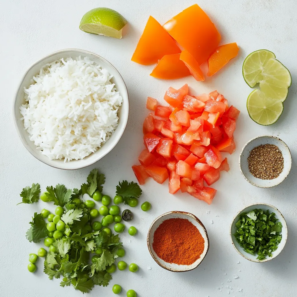 To make Mexican restaurant rice, you need a few key items. Long-grain white rice gives the dish a light and fluffy texture. Using low-sodium chicken broth keeps the flavor rich without being too salty. Fresh vegetables add color and taste. Onions, garlic, tomatoes, and red bell peppers are all great choices. Don’t forget the frozen peas for that sweet touch.
