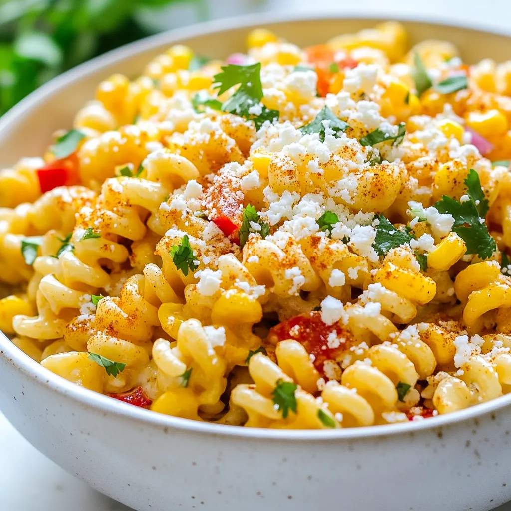 A vibrant and flavorful pasta salad inspired by Mexican street corn, featuring fresh ingredients and a creamy dressing.