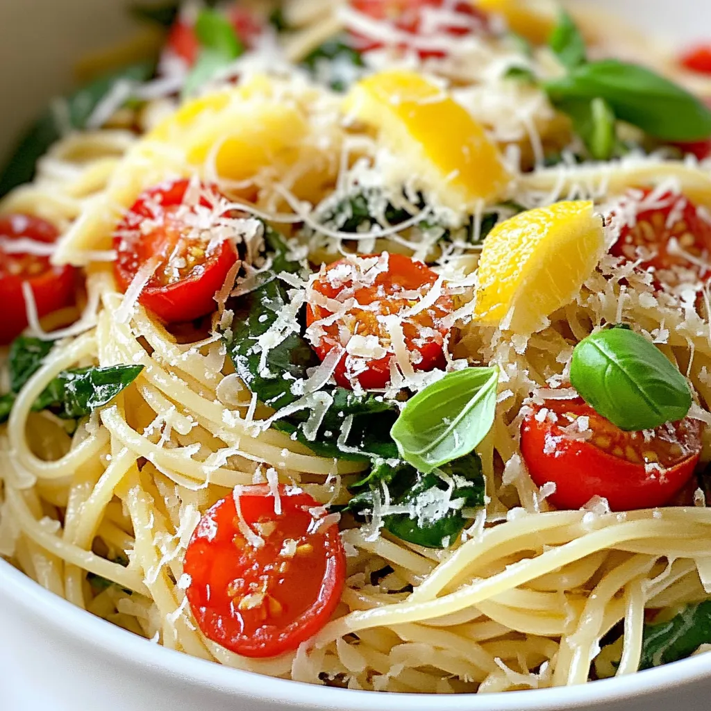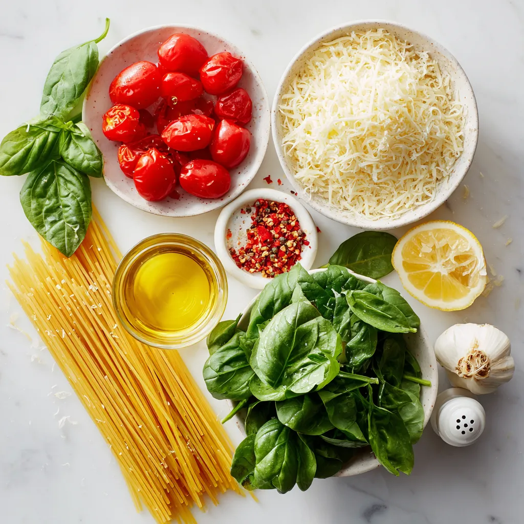 You can easily swap some ingredients if needed. Use any pasta shape, like linguine or fettuccine. If you don’t have cherry tomatoes, use canned diced tomatoes. For a vegan option, replace Parmesan with nutritional yeast. You can also use kale or arugula instead of spinach. Use lemon juice if you don’t have a fresh lemon.