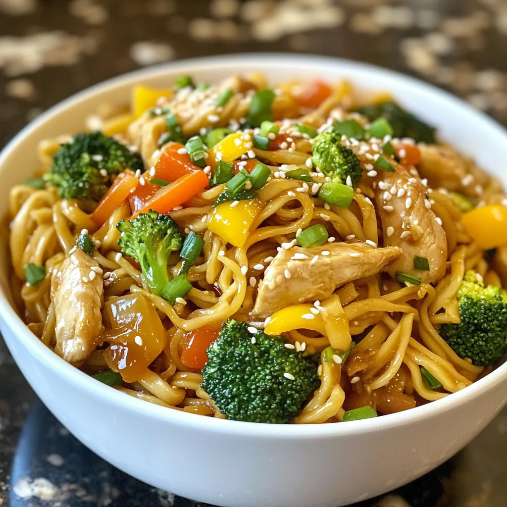 A quick and delicious chicken lo mein recipe that combines tender chicken, vibrant vegetables, and flavorful noodles.