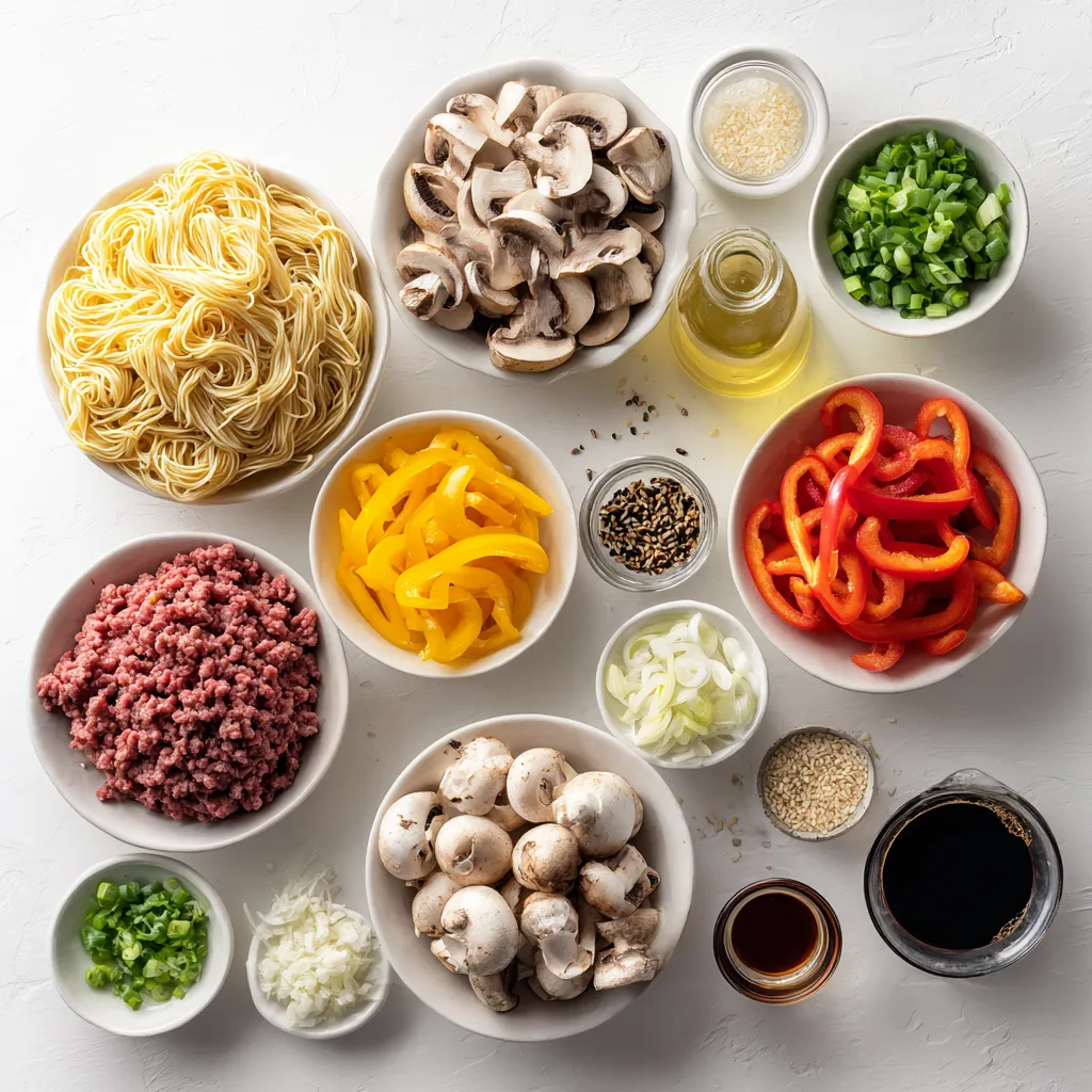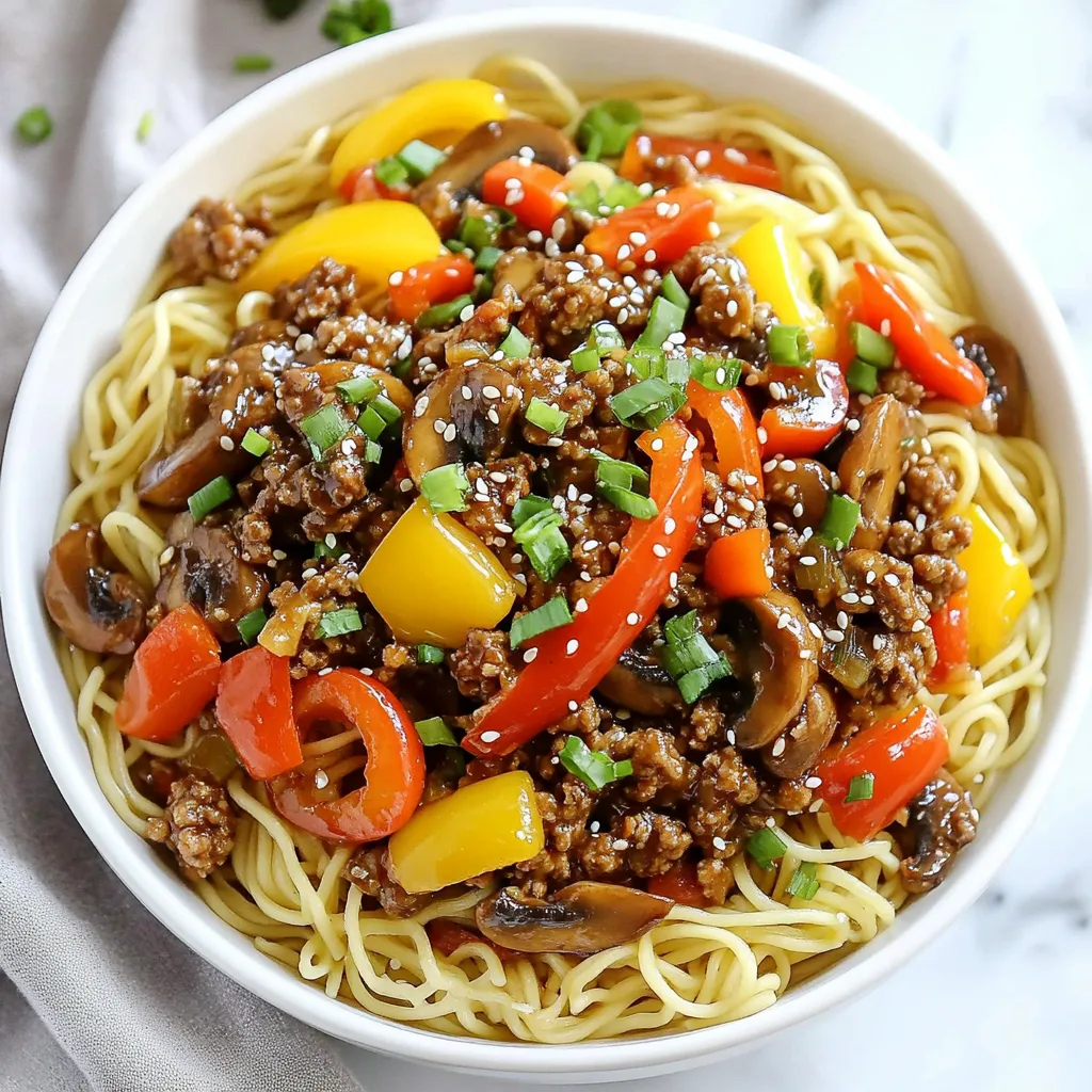 You can change some ingredients to fit your taste. For the beef, try ground turkey or chicken. These meats taste great and can lighten the dish. If you want a meatless option, use tofu or tempeh. For noodles, you can swap egg noodles for rice noodles or even zucchini noodles. Both options add unique flavors and textures. As for vegetables, feel free to mix in carrots, snap peas, or broccoli. These swaps keep the meal fresh and exciting.