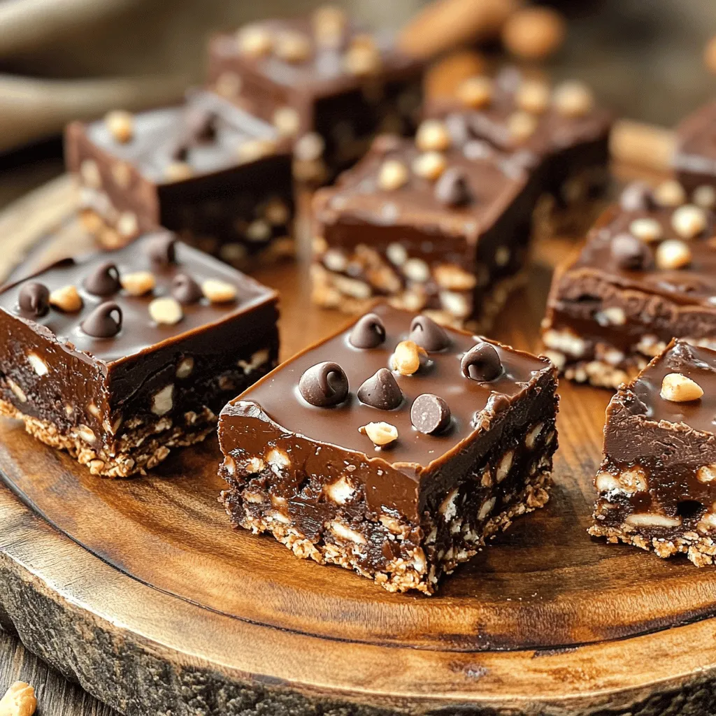 ![To make these tasty no bake chocolate oat bars, gather the following ingredients: - 2 cups rolled oats - 1 cup almond butter (or any nut butter of your choice) - 1/2 cup honey or maple syrup - 1/2 cup unsweetened cocoa powder - 1/2 cup chocolate chips (dark or semi-sweet) - 1/4 teaspoon sea salt - 1 teaspoon vanilla extract - Optional: 1/4 cup chopped nuts or seeds (like walnuts or chia seeds) for added crunch These ingredients come together to create a delicious and filling snack. You can easily swap ingredients to fit your taste. Here are some ideas: - Nut Butters: Use peanut butter, cashew butter, or sunflower seed butter if you prefer. - Sweeteners: Swap honey for agave nectar or brown rice syrup for a different flavor. - Cocoa Powder: If you want a lighter taste, replace cocoa powder with carob powder. - Chocolate Chips: Use white chocolate chips or omit them for a less sweet bar. Feel free to mix and match based on what you have at home! This recipe can fit many diets: - Vegan: Choose maple syrup and a vegan nut butter to keep it plant-based. - Gluten-Free: Ensure the oats are labeled gluten-free to avoid cross-contamination. - Nut-Free: Use sunflower seed butter instead of nut butter for a nut-free option. These bars can work for many dietary needs, making them a great choice for gatherings! 1. Start by mixing the rolled oats, cocoa powder, and sea salt in a large bowl. Make sure to combine them well. 2. Next, grab a separate microwave-safe bowl. Add your almond butter and honey (or maple syrup) to this bowl. Heat it in the microwave for about 20 to 30 seconds. This step makes it easier to mix. 3. Stir the heated nut butter mix until it becomes smooth. Then, pour it into the bowl with oats. Add the vanilla extract and mix everything until it is well combined. 4. If you want, gently fold in chocolate chips and any nuts or seeds you like. This adds a nice crunch to your bars. 5. Line an 8x8-inch baking dish with parchment paper. Make sure some paper hangs over the sides. This helps you lift the bars out later. 6. Now, transfer the mixture to the baking dish. Spread it evenly and press it down firmly with your hands or a spatula. This helps the bars hold together. 7. Place the dish in the refrigerator for at least 2 hours. This cooling time helps the bars set properly. 8. Once the bars are firm, lift them out using the parchment paper. Cut them into squares or bars. - Always use rolled oats for the best texture. Quick oats can make the bars too mushy. - If you find the mixture too dry, add a little more almond butter or honey. It should stick together easily. - Mixing the heated nut butter and sweetener well is key. This step ensures even sweetness throughout. - Fold in chocolate chips last. This keeps them intact and prevents them from melting too much. - Make sure to press the mixture down firmly in the baking dish. This helps the bars stay compact. - Cover the dish with plastic wrap or a lid while it chills. This keeps the bars from drying out. - Check the bars after 2 hours. They should feel firm but not rock hard. You can let them sit longer if needed. - If your bars don’t set well, they might need more time in the fridge. Just be patient! For the complete recipe, check out the [Full Recipe]. To get the best texture and flavor in your bars, use fresh ingredients. Old oats or nut butter can change the taste. Mix the dry ingredients well before adding the wet ones. This helps them combine smoothly. When you press the mixture into the pan, make sure it is compact. This keeps the bars from crumbling later. One common mistake is not measuring ingredients correctly. Use a scale or measuring cups for accuracy. Also, don’t skip the refrigeration step. Bars need time to set, so resist the urge to cut them too soon. Be careful when heating the nut butter and honey. Overheating can change the flavor, so stick to 20-30 seconds in the microwave. These bars are tasty on their own, but you can add fun touches. Try serving them with a scoop of yogurt or a drizzle of honey. Pair them with a glass of almond milk or a cup of coffee. For a lively snack, add fresh fruit like bananas or berries on the side. You can find the Full Recipe in the article to explore more ideas. {{image_2}} You can easily change the taste of your no bake chocolate oat bars. Adding dried fruits like raisins, cranberries, or apricots brings a sweet and chewy texture. You can also mix in nuts or seeds for crunch. Think walnuts, almonds, or even sunflower seeds. Just stir in about 1/4 cup of your choice when mixing the ingredients. This step not only adds flavor but also boosts nutrition. If you want a healthier twist, swap out some ingredients. Use almond butter or peanut butter to keep it rich without adding too much sugar. Instead of honey, try mashed bananas or unsweetened applesauce. These changes lower calories and add natural sweetness. You can also use 1/4 cup of unsweetened cocoa powder for a richer chocolate flavor without added sugar. You don’t have to stick to squares with these bars. Use a cookie scoop to make small bites. Just drop spoonfuls onto parchment paper and chill. This makes a fun snack for kids and adults alike. You can also use muffin tins to create mini bars. Just press the mixture into each cup, then chill. Whether you choose squares or bites, they will still taste great! For the full recipe, check out the details above. To keep your No Bake Chocolate Oat Bars fresh, store them in an airtight container. This helps keep moisture out and prevents the bars from getting hard. You can place parchment paper between layers to avoid sticking. This small step makes a big difference! When stored correctly, these bars last up to a week in the fridge. For the best taste, enjoy them within the first few days. If you notice any off smell or change in texture, it's best to toss them out. Keeping them cool helps maintain their flavor and texture. You can freeze these bars for longer storage. Wrap each bar ti