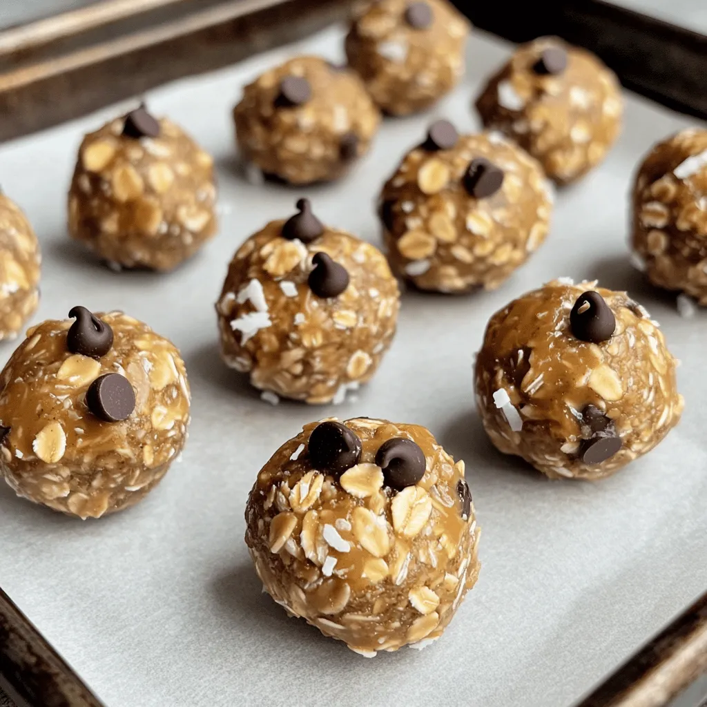 To make these Peanut Butter Oat Energy Balls, you will need: - 1 cup rolled oats - 1/2 cup creamy peanut butter - 1/4 cup honey or maple syrup - 1/4 cup ground flaxseed - 1 teaspoon vanilla extract - A pinch of salt These main ingredients form a healthy base. Rolled oats provide fiber, while peanut butter adds protein and healthy fats. Honey or maple syrup gives sweetness. Ground flaxseed boosts nutrition with omega-3s. You can customize your energy balls with these add-ins: - 1/3 cup mini chocolate chips - 1/4 cup shredded coconut Adding mini chocolate chips gives a sweet touch. Shredded coconut adds a nice chew. Feel free to mix and match these options to suit your taste. These energy balls fit many diets. They are gluten-free if you choose certified oats. They are vegan if you use maple syrup instead of honey. The recipe is nut-friendly if you swap peanut butter for sunflower seed butter. Always check for allergies when sharing with others. Start by getting a big bowl. In it, mix the rolled oats, ground flaxseed, and a pinch of salt. Stir these dry ingredients well. This mix gives your energy balls a solid base. The oats add fiber, while flaxseed packs in healthy fats. Now, grab a spoon and add the creamy peanut butter to the dry mix. Pour in the honey or maple syrup next. Don't forget to add one teaspoon of vanilla extract. This sweetens the mix and adds flavor. Use your spoon or spatula to stir until everything blends into a sticky dough. It should feel thick and gooey. Once your mixture is ready, it’s time to chill. Put the bowl in the fridge for about 30 minutes. This step helps the dough firm up, making it easier to roll. After chilling, take the bowl out and scoop about one tablespoon of the mix. Roll it into a ball with your hands. Place each ball on a baking sheet lined with parchment paper. If you like, you can roll them in shredded coconut for extra flavor. Store your energy balls in an airtight container in the fridge. They’ll last up to one week, ready for a quick snack! Mixing your ingredients well is key to tasty energy balls. Start by combining the dry items first. This includes rolled oats, ground flaxseed, and salt. Stir them in a big bowl until mixed. Next, add the creamy peanut butter, honey, and vanilla extract. Use a spoon or spatula to mix everything. Aim for a sticky dough. If it feels too dry, add a bit more peanut butter. If too wet, add oats. Store your energy balls in an airtight container. This keeps them fresh. Place them in the fridge for up to one week. You can also freeze them for longer storage. Just make sure to wrap them tightly. When ready to eat, let them thaw for a bit. They taste great chilled or at room temp. When rolling the balls, keep your hands slightly damp. This helps prevent the mix from sticking. Scoop about one tablespoon of the mixture for each ball. Roll it gently between your palms until smooth. If you want, roll the balls in shredded coconut for extra flavor. This adds a fun texture too! Place the balls on a lined baking sheet after rolling. {{image_2}} You can change the taste of your peanut butter oat energy balls in many ways. Try adding spices like cinnamon or nutmeg for warmth. You can also use different nut butters, like almond or cashew. For a fruity twist, mix in dried fruits such as cranberries or raisins. You could even add cocoa powder for a rich chocolate flavor. Each change can give you a new treat to enjoy. Want to make these energy balls a bit healthier? You can swap out some ingredients. For example, use almond flour instead of some oats for added protein. You can also replace honey with unsweetened applesauce to cut down on sugar. If you want more fiber, add more ground flaxseed or chia seeds. These small changes can boost nutrition without losing flavor. If you don't want to use honey or maple syrup, there are other options. Try using agave syrup or coconut nectar for a different sweetness. Stevia is another great choice if you want a low-calorie sweetener. Just remember to adjust the amount since some sweeteners are stronger than others. Finding the right sweetener can help you enjoy these energy balls even more. One Peanut Butter Oat Energy Ball has about 100 calories. The total recipe makes about 14 to 16 balls. You can adjust based on the size you make. Each ball packs energy from oats and peanut butter. This makes them a great snack. - Rolled oats: They provide fiber and help keep you full. - Peanut butter: It's rich in protein and healthy fats. - Ground flaxseed: This adds omega-3 fatty acids and fiber. - Honey or maple syrup: Natural sweeteners that give quick energy. - Shredded coconut (optional): It adds healthy fats and a nice chew. - Mini chocolate chips (optional): They add a fun flavor boost. These ingredients work together to provide a mix of energy, protein, and healthy fats. I recommend one or two energy balls per snack. They are filling, so you don’t need many. If you make the balls smaller, you can enjoy more. Just remember to keep track of how many you eat. Enjoy them as a quick breakfast or a post-workout snack. Yes, you can freeze them! Just place the energy balls in an airtight container. Make sure to layer them with parchment paper to avoid sticking. They freeze well for up to three months. When you want one, let it thaw in the fridge or at room temperature. Homemade energy balls last about one week in the fridge. Store them in an airtight container. This keeps them fresh and tasty. If you want them to last longer, freeze them as mentioned above. You can use almond butter or sunflower seed butter instead of peanut butter. Both options offer great taste and texture. They also provide healthy fats and protein. Choose what suits your taste or allergy needs. Yes, these energy balls are great for kids! They are nutritious and easy to eat. Kids can enjoy them as a snack or during sports. Just keep an eye on any allergies to nuts or other ingredients. In this post, we explored making Peanut Bu