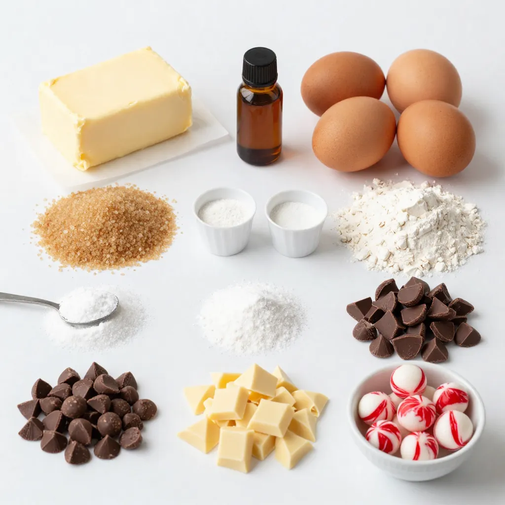 These ingredients come together to create a cookie that sings of the holiday spirit. The butter gives rich flavor, while the sugars add sweetness. Eggs help bind the dough, making it soft and chewy. Vanilla extract brings warmth, and the flour provides structure. Baking powder and baking soda help the cookies rise. The chocolate chips and crushed peppermint create a festive touch.