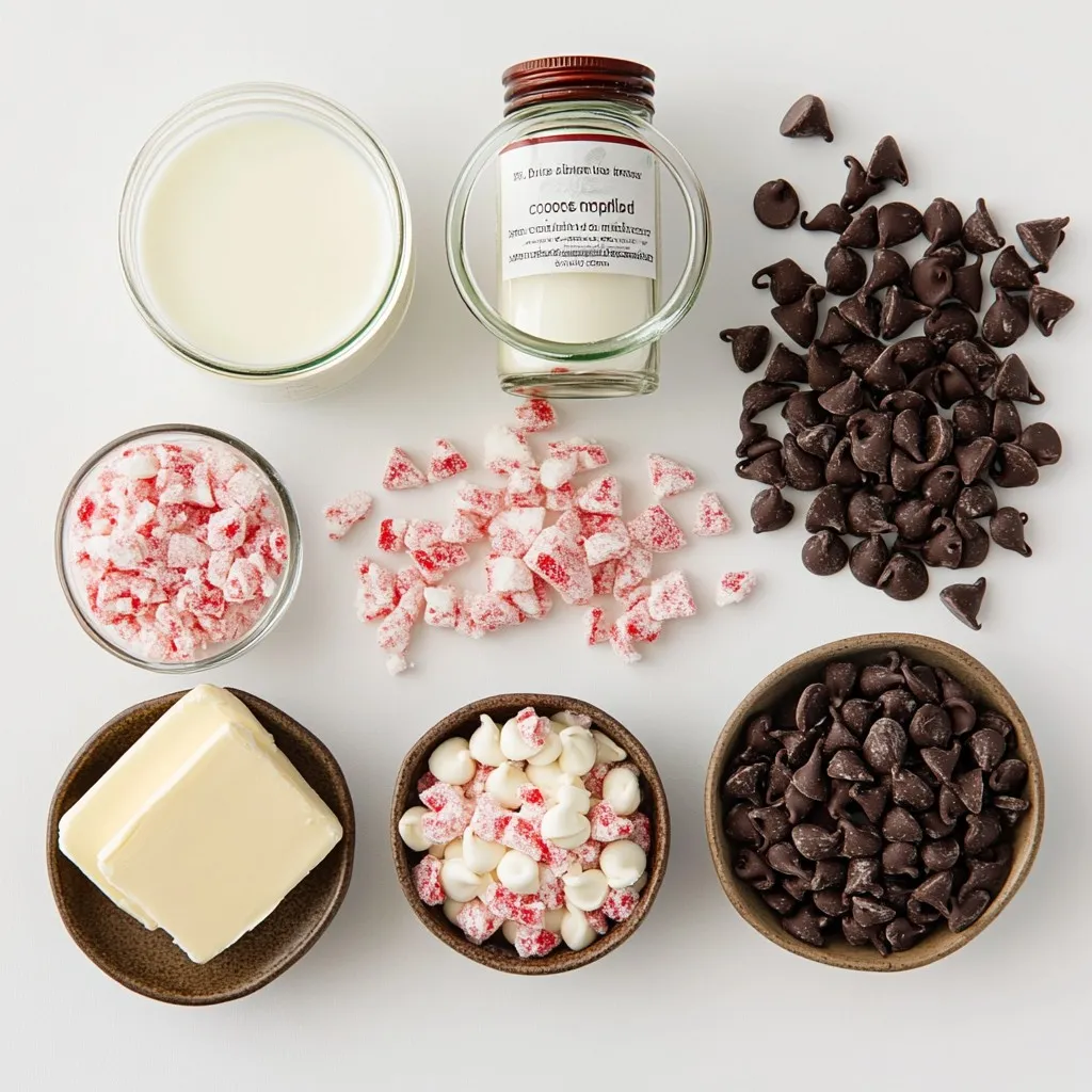 - 2 cups semi-sweet chocolate chips - 1 cup sweetened condensed milk - 1/2 cup white chocolate chips - 1 teaspoon peppermint extract - 1/2 cup crushed peppermint candies (plus extra for topping) - 1/4 teaspoon salt - 1 tablespoon unsalted butter The key to great peppermint Christmas fudge lies in the ingredients. You start with semi-sweet chocolate chips. They give a rich flavor. The sweetened condensed milk adds creaminess. White chocolate chips add sweetness and a nice contrast. Next, you need peppermint extract. It gives the fudge its minty taste. The crushed peppermint candies add crunch and fun. Salt enhances all the flavors. Finally, unsalted butter adds smoothness to the mix. - Extra crushed peppermint candies - Drizzled chocolate For toppings, you can use extra crushed peppermint candies. They look festive and taste great. A drizzle of chocolate on top adds another layer of flavor and makes it look fancy. {{ingredient_image_1}} - Line a baking dish with parchment paper. - Melt chocolate mixture on low heat. First, I take an 8x8 inch square baking dish and line it with parchment paper. This step is key. The paper helps remove the fudge later. I leave some overhang for easy lifting. Next, I grab a medium saucepan and place it on low heat. I add the semi-sweet chocolate chips, sweetened condensed milk, and unsalted butter. I stir the mixture often until it is melted and smooth. I make sure not to let it boil, as this can ruin the texture. - Combine fudge layers and topping. - Refrigerate and set. Once my chocolate mixture is ready, I remove it from the heat. I stir in the peppermint extract and salt until well blended. Then, I fold in the crushed peppermint candies. I pour half of this fudge into my prepared baking dish. I spread it evenly across the bottom. In another bowl, I melt the white chocolate chips in the microwave. I do this in 30-second bursts, stirring in between. After it melts, I pour it over the first fudge layer. I spread it out evenly again. Finally, I pour the remaining semi-sweet fudge over the white chocolate. I smooth the top with a spatula. To finish, I sprinkle extra crushed peppermint candies on top for a festive look. I then place the dish in the fridge for at least 2 hours to set. - Cutting into squares. - Presentation ideas. After the fudge has set, I lift it out using the parchment overhang. I cut it into neat squares. For presentation, I like to place the squares on a festive plate. A sprinkle of crushed peppermint on top adds a nice touch. You can also serve it in cute paper cups for a fun holiday treat! To ensure your fudge has a smooth and creamy texture, here are some key points: - Melt Slowly: Always melt your chocolate mixture over low heat. High heat can cause the chocolate to seize and become grainy. - Stir Constantly: Keep stirring the mixture. This helps it melt evenly and prevents burning. Also, avoid letting the mixture boil. Boiling can result in a gritty texture. For the best results, refrigeration is key. - Refrigeration Duration: Let your fudge chill for at least 2 hours. This allows it to set properly and gain the right texture. - Serving Freshness: Serve your fudge soon after cutting. It tastes best fresh but can last in the fridge for up to two weeks. Sometimes, fudge may not turn out as expected. Here’s how to fix common issues: - Grainy Texture: If your fudge is grainy, it may have overheated. To fix this, try melting it again over low heat. Stir in a splash of warm cream to help smooth it out. - Cutting Difficulty: If your fudge is hard to cut, let it sit at room temperature for a few minutes. This will soften it slightly, making it easier to slice into squares. Pro Tips Use High-Quality Chocolate: Opt for good quality semi-sweet and white chocolate chips for the best flavor and texture in your fudge. Chill the Fudge Properly: Ensure the fudge is refrigerated for at least 2 hours, or until firm, to achieve the right consistency for cutting. Customize Your Toppings: Feel free to mix in other crushed candies or nuts along with the peppermint for a unique twist on your fudge. Store in an Airtight Container: Keep the fudge in an airtight container in the refrigerator to maintain its freshness for up to two weeks. {{image_2}} You can make peppermint Christmas fudge in different flavors. Try chocolate mint fudge for a rich twist. Just mix in mint extract with the semi-sweet chocolate. For a lighter taste, go with white chocolate peppermint fudge. Use white chocolate chips and keep the same peppermint extract. Both options add fun to your holiday treats. If you need gluten-free options, use gluten-free chocolate chips. Most brands fit this need. For vegan substitutes, swap sweetened condensed milk with coconut milk and ensure all chocolate is dairy-free. These changes keep the fudge tasty and suitable for everyone. You can customize your fudge with fun add-ins. Nuts like walnuts or pecans add crunch. Dried fruits such as cranberries bring a chewy texture. You can also mix in different types of candies. Try M&M's or chocolate-covered pretzels to make your fudge extra special. These variations let you create a fudge that is truly unique. To keep your peppermint Christmas fudge fresh, store it in the refrigerator. Wrap it tightly in plastic wrap. You can also place it in an airtight container. For longer storage, freeze the fudge. Use a freezer-safe container to avoid freezer burn. When stored correctly, fudge lasts about two weeks in the fridge. In the freezer, it can last up to three months. Check for signs of spoilage. If it smells off or has a dry texture, it’s best to toss it. If you want to reuse fudge, you can reheat it. Place it in a microwave-safe bowl. Heat in short bursts, around 10 to 15 seconds. Stir in between until it’s melted and smooth again. This works well for drizzling or spreading over desserts. To make peppermint Christmas fudge, start with a simple recipe. You will need: - 2 cups semi-sweet chocolate chips - 1 cup